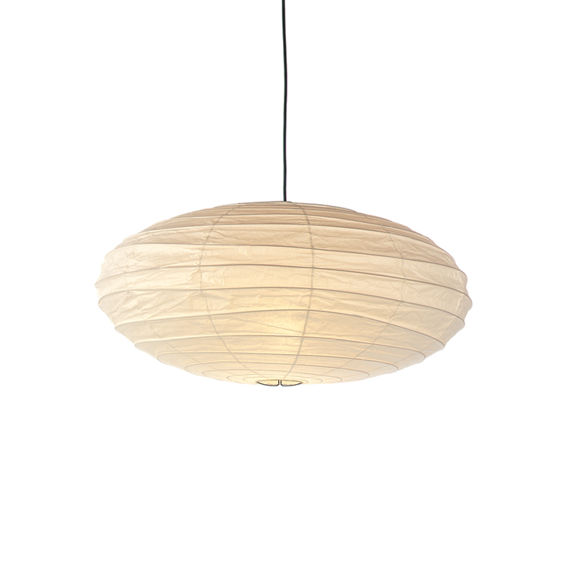 In 1951, Japanese-American artist Isamu Noguchi created the Akari Light Sculptures, a collection of unique, hand-crafted light fittings. Published by Vitra, these paper sculptures are part of the designer's already diverse oeuvre, which ranges from furniture to the design of spaces of all kinds. In addition to material and form, Noguchi's sculptural style takes into account the harmony produced by each piece and the space it occupies, and this has had a lasting influence on design since the 1950s. The Vitra Akari lamps - a Japanese term meaning clarity or light - evoke a certain feeling of lightness and delicacy, just like the handmade paper parasols or lanterns that inspired their design. Each of the lights including the Akari 50EN suspension is handmade: the lamp's framework is obtained by stretching bamboo rods, wrapped in thin strips of washi paper glued to the structure.