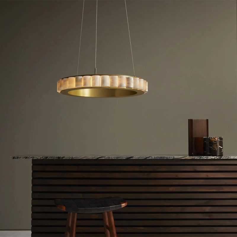 The Avalon collection, edited by lighting house CTO Lighting, is inspired by the legendary island of the same name, whose mystical tales of light and shadow have enchanted the world for centuries. The Avalonsuspensions take up these charming characteristics in their design with cascades of light emanating from a precious alabaster ring, encapsulated in brass or bronze, creating exquisite lighting. The Avalon lamps are ideal for lighting large spaces or reception rooms, and are available in two sizes.
