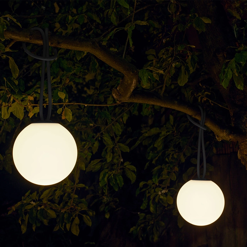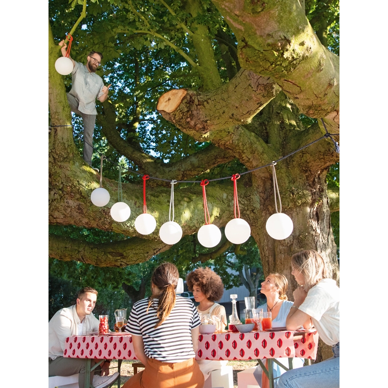 Bolleke is a cordless, portable and rechargeable lamp to light up wherever you are! Its design makes the most of all its components. For example, when lit, its rounded shape makes it look like a pearl. The regular contours of the Bolleke allow even brightness in any location. The light is distributed evenly throughout the lamp, a technology specially designed by Fatboy. The silicone rubber buttons are subtly integrated into the design and match the colour of the buckle, which takes its inspiration from hair elastics and sail fastening systems. Tying Bolleke is as simple as tying your hair back. With three different luminosities, the playful Bolleke luminaire knows how to stand out.