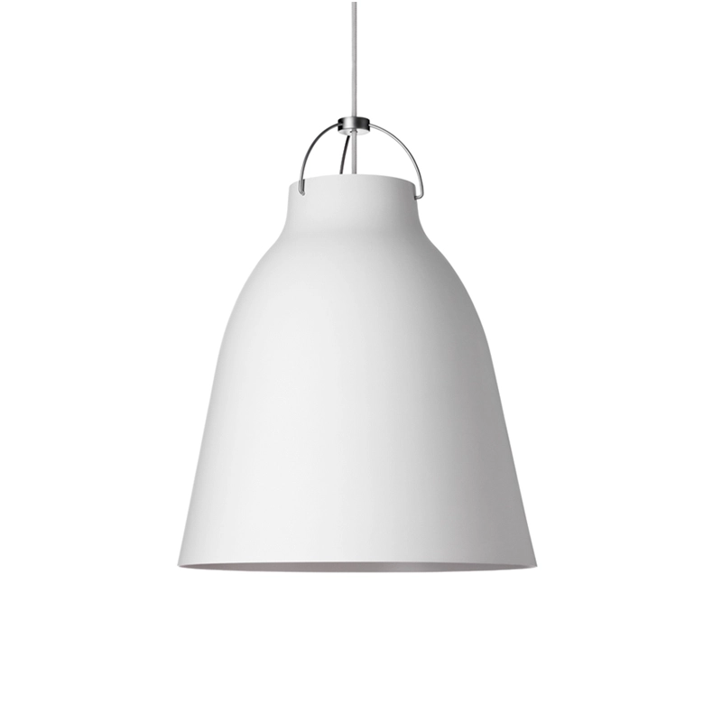 Edited by Fritz Hansen, the seductive suspension Caravaggio has quickly become a design icon. Designer Cecilie Manz has reinterpreted a timeless silhouette with a fresh, modern expression. Available in several sizes and numerous matt or glossy colours, the Caravaggio suspended lamp consists of a metal shade with soft lines and feminine curves, suspended from a textile-covered cable. The lamp emits concentrated light downwards, but also upwards, through the opening in the upper part of the shade. The suspension Caravaggio is designed to avoid glare and produces a beautiful, balanced light.