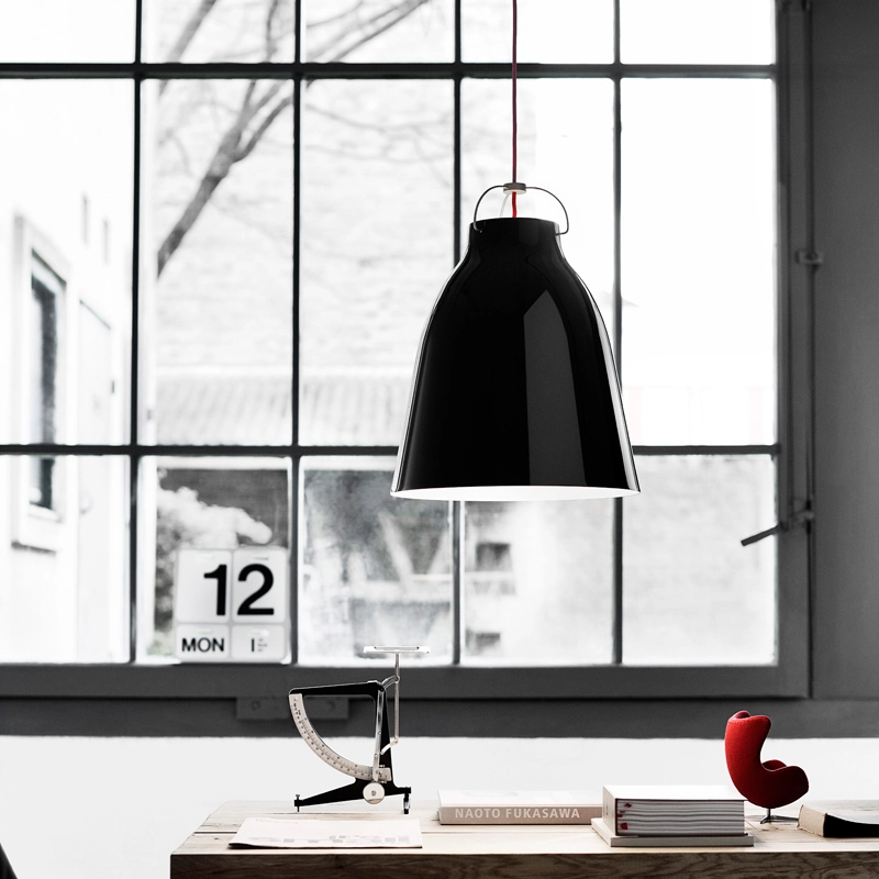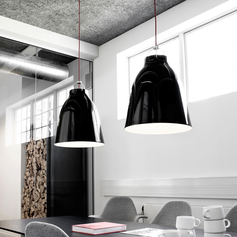 Edited by Fritz Hansen, the seductive suspension Caravaggio has quickly become a design icon. Designer Cecilie Manz has reinterpreted a timeless silhouette with a fresh, modern expression. Available in several sizes and numerous matt or glossy colours, the Caravaggio suspended lamp consists of a metal shade with soft lines and feminine curves, suspended from a textile-covered cable. The lamp emits concentrated light downwards, but also upwards, through the opening in the upper part of the shade. The suspension Caravaggio is designed to avoid glare and produces a beautiful, balanced light.