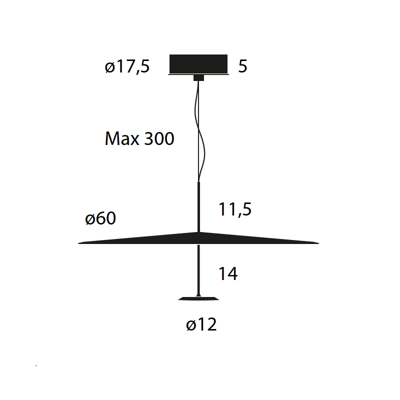 ø 60 x h 25,5 cm, câble 300 cm