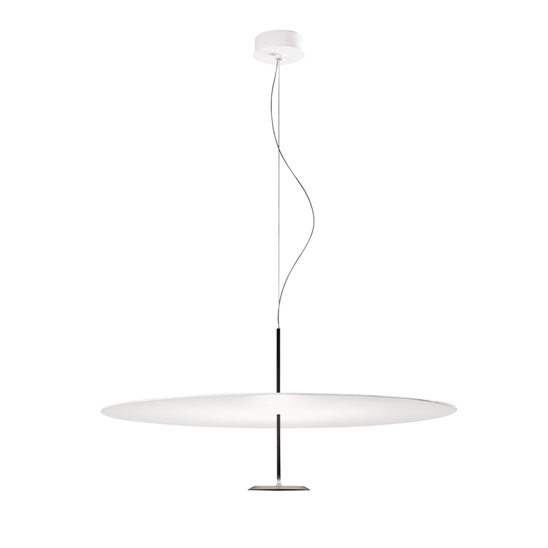 Edited by Lumina, DOT is a minimalist suspension that looks like a floating disc of light. This is an assembly of two parallel discs connected by a metal rod. The reflector has a super 'matt' white finish, while the smaller disc contains a ring of LEDs that reflect light back to the larger reflector disc. A custom-designed heat pipe transfers the heat from the light source to the heat sink hidden in the reflector. Dot presents an innovative approach to lens technology and heat dissipation. Above a dining table or bar, the suspension Dot can be used on its own or as a composition of several elements.