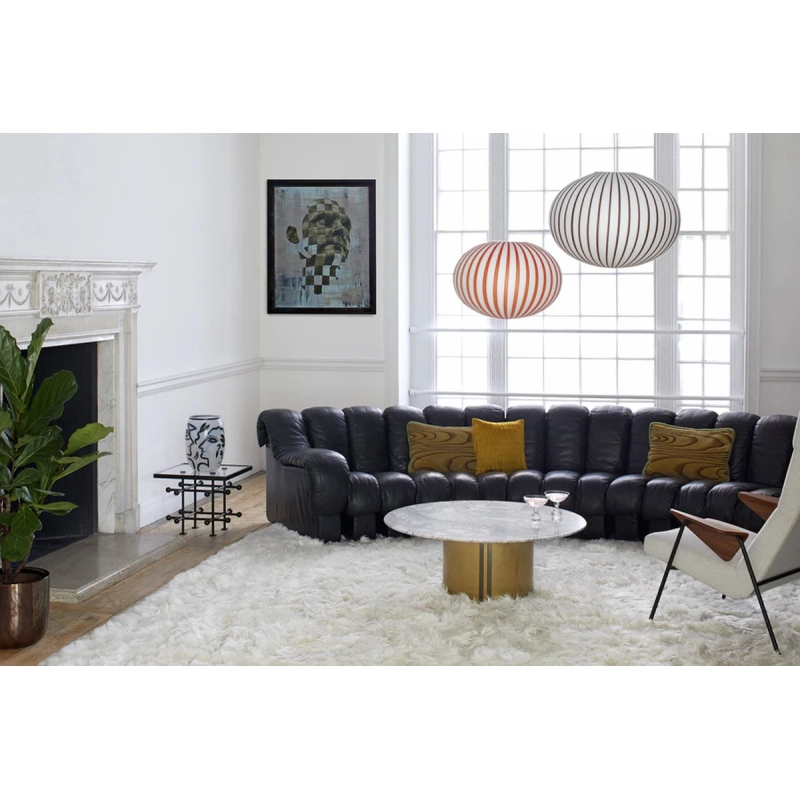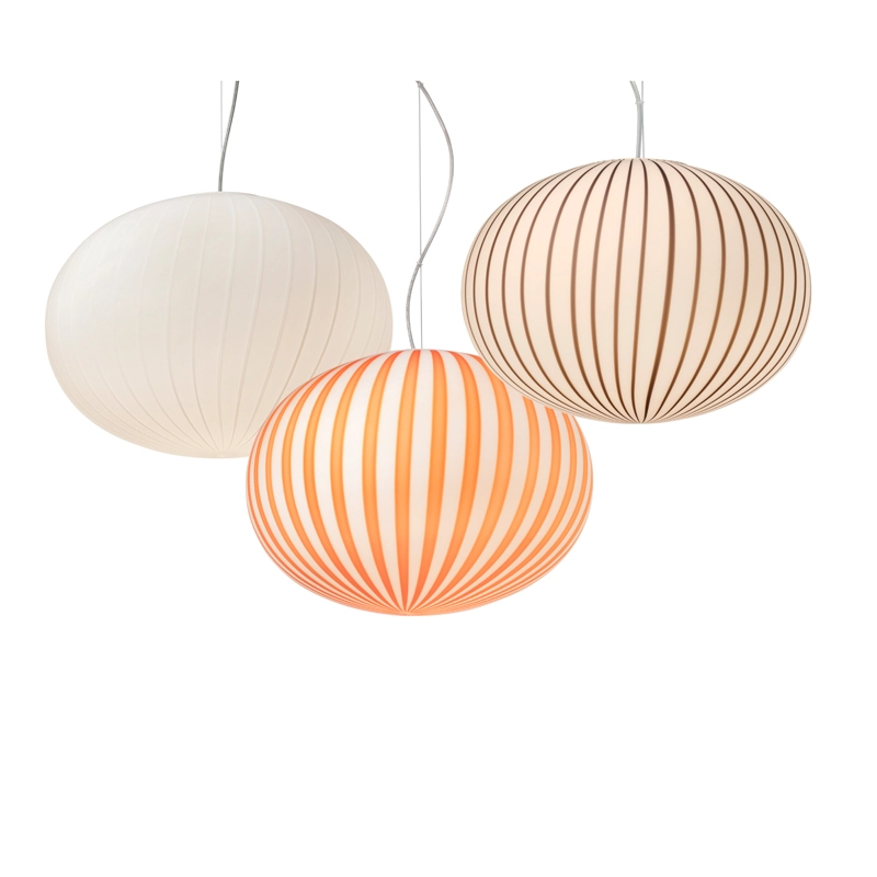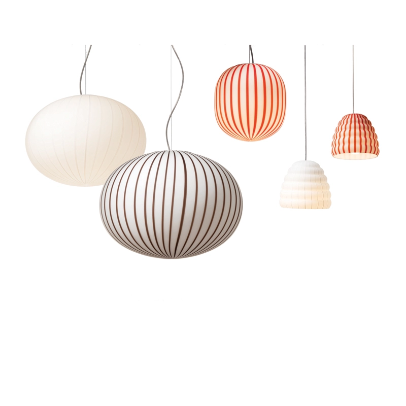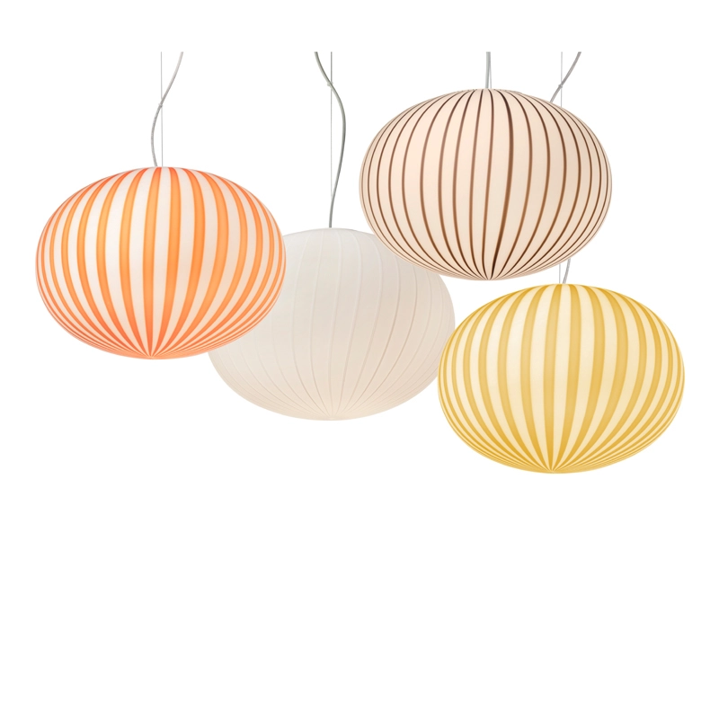 Designed by Sebastian Wrong for Established & Sons, the collection of Filigrana luminaires exploits the mastery and heritage of traditional Venetian blown glass. This series fuses a 16th-century technique from Murano with a modern aesthetic, to create a mesmerising luminaire whose stripes are reminiscent of candy canes. Each Filigrana luminaire is unique, thanks to the handcrafted process used. The glass is mouth-blown by highly skilled craftsmen. Available in a range of sizes and colours, Filigrana emits a soft, diffused light. Introduced for the first time in 2018, this instantly recognisable lamp brings a cheerful, graphic touch to all kinds of spaces. The suspension Filigrana can be used on its own or as a composition of several elements to create unique combinations.