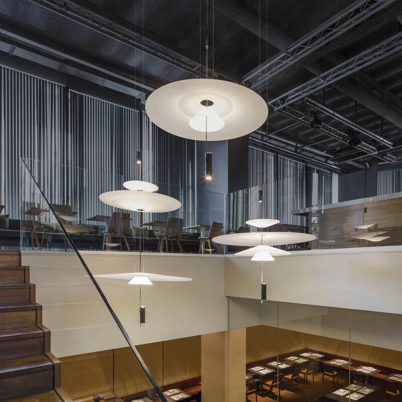 The Flamingo suspension, a work by designer Antoni Arola published by Vibia, magnificently evokes both the poetic and sculptural qualities of light.