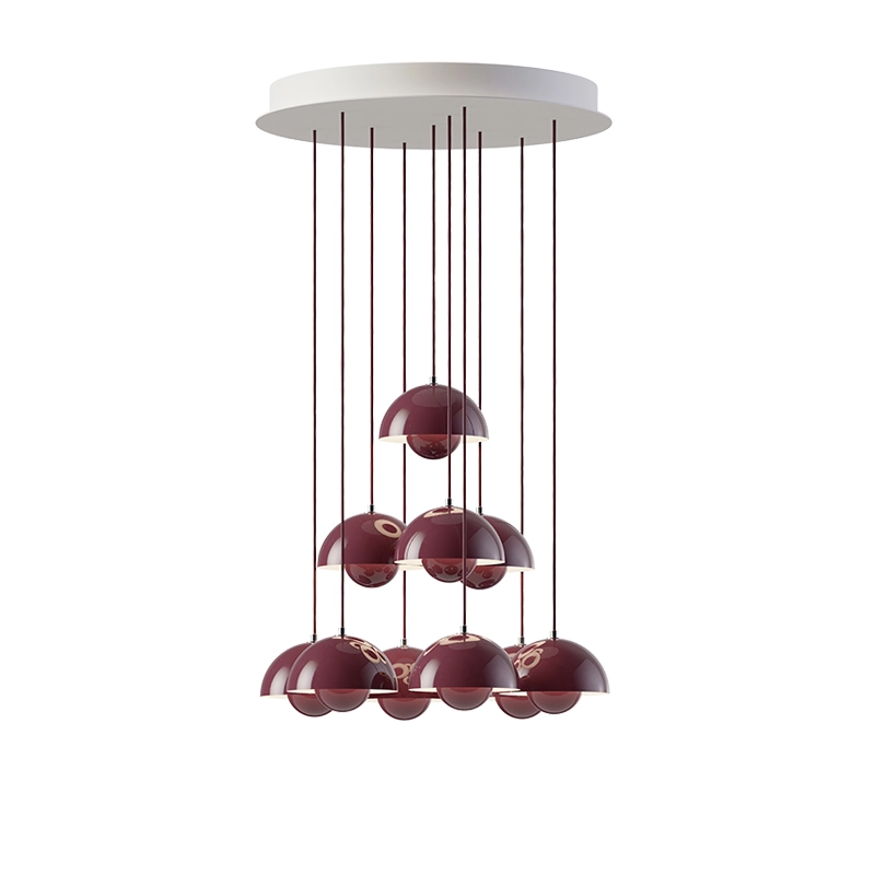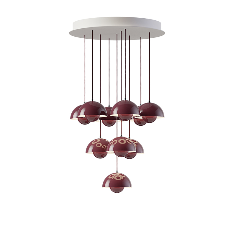 And Tradition presents Flowerpot Chandelier, in an exact translation of Verner Panton's characteristic immersive environments, as seen in his projects such as the interior of the Spiegel publishing house in 1969 and the space installation 'Pantorama' in 1979. It is now possible to create a chandelier using the iconic Flowerpot VP10 in 10-piece configurations.
