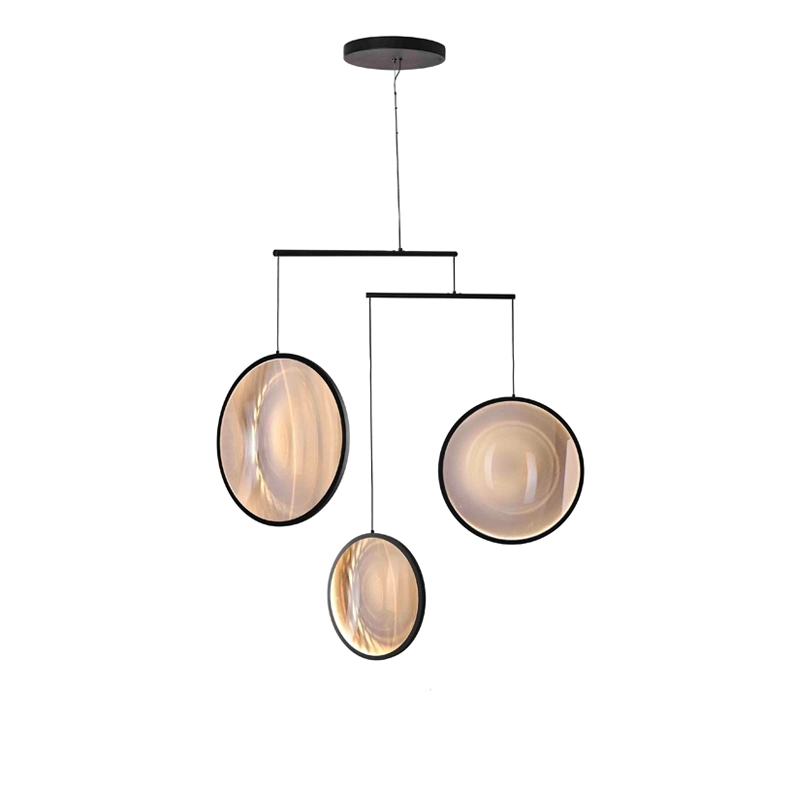 Available in three models, Focusfrom DCW is a suspension made up of luminous discs suspended like a mobile. It's an ethereal, poetic light that's as beautiful on as it is off. A veritable light sculpture that inhabits the space and transforms it. The different sized lenses of Focus are like magnifying glasses and change the perception of the environment depending on where the luminaire is viewed from.
