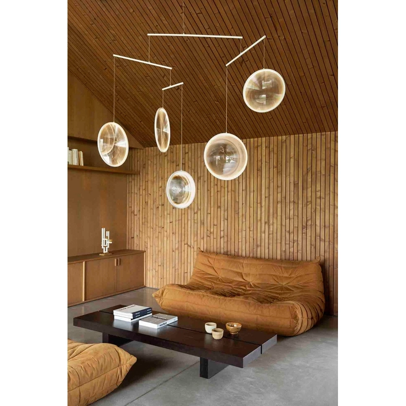 With Focus, designer Yuji Okitsu has drawn inspiration from astronomy and soap bubbles to create a collection of dreamlike pendant lights.