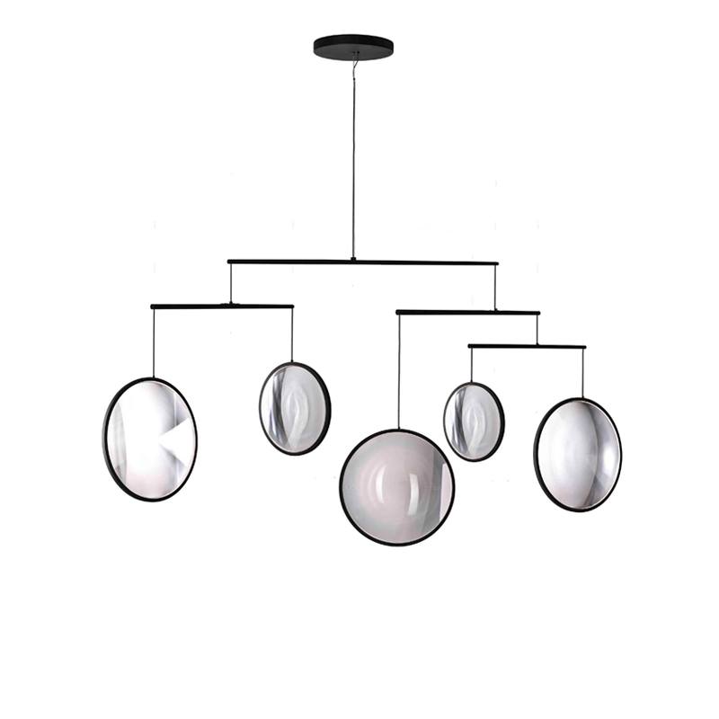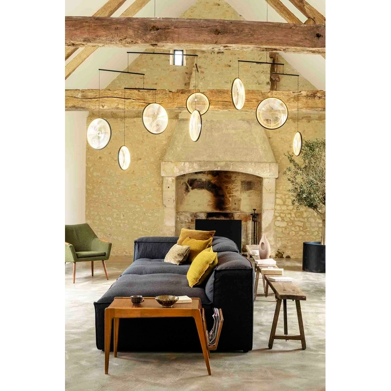 Available in three models, Focus by DCW is a suspension made up of luminous discs suspended like a mobile. It's an ethereal, poetic light that's as beautiful on as it is off. A veritable light sculpture that inhabits the space and transforms it. The different sized lenses of Focus are like magnifying glasses and change the perception of the environment depending on where the luminaire is viewed from.