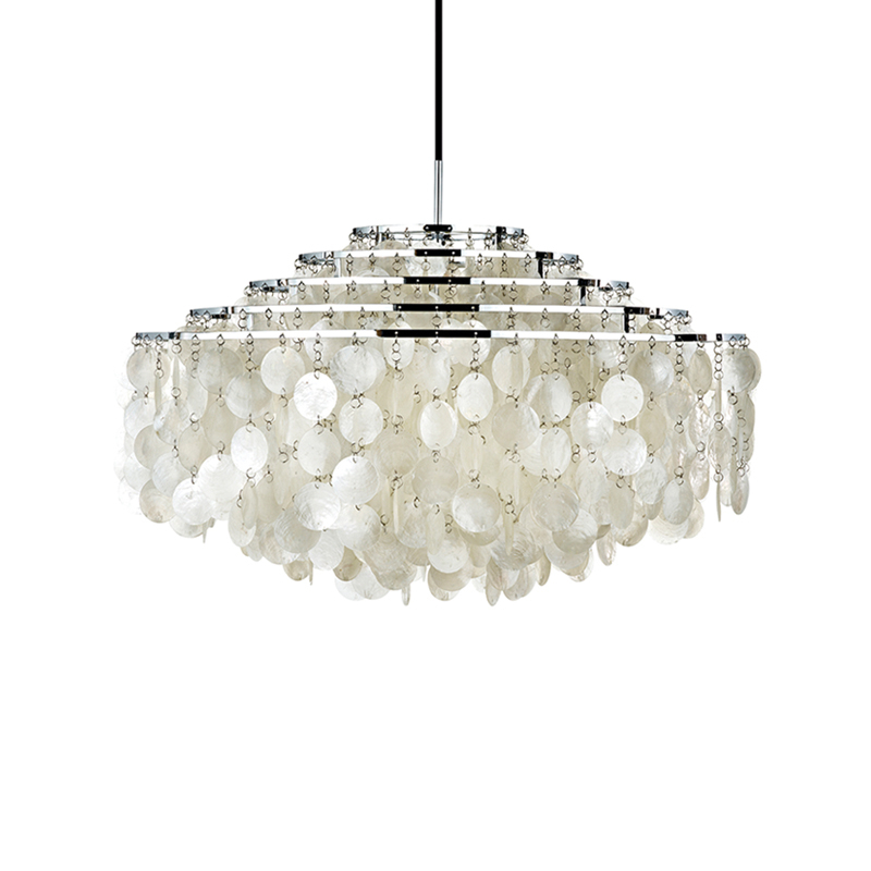 Many consider the Fun collection to be one of Verner Panton's greatest masterpieces of lighting design. Since 1964, this suspension has been a source of joy and a wealth of stories. Made up of dozens of shell discs suspended from a 5-ring metal structure, the Fun 11DM Verpan suspension will light up your home with elegance.