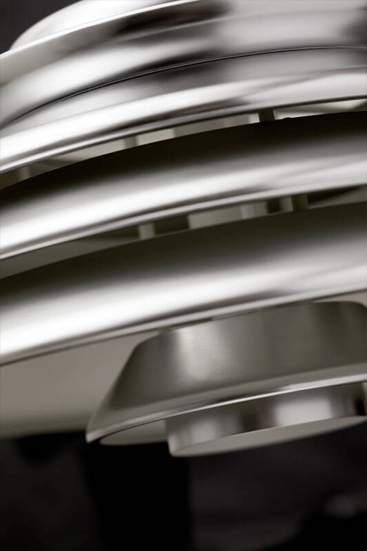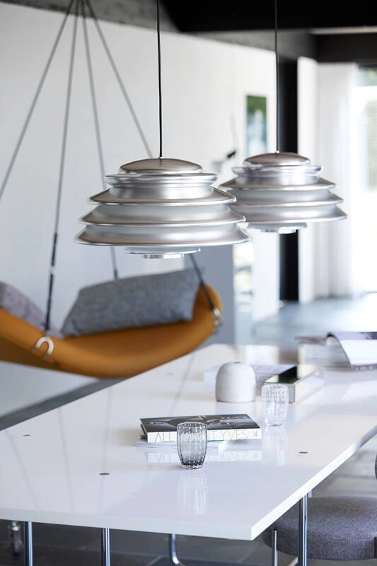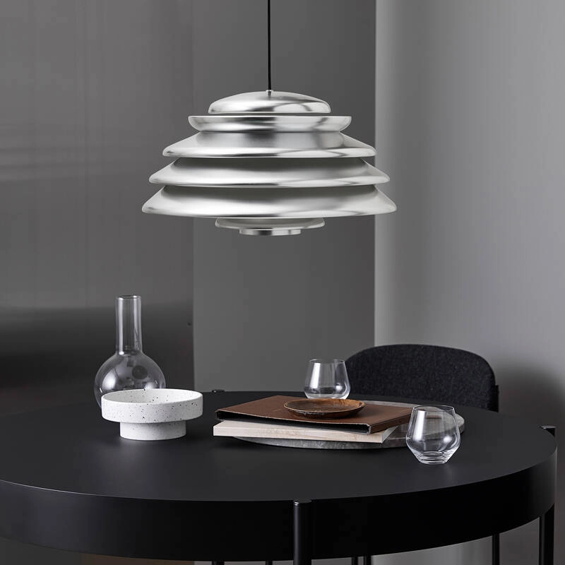 Verner Panton was known for his ability to play with elemental geometric shapes and draw inspiration from organic forms found in nature; and the suspension Hive is no exception. Made from several concentric diffusers of different sizes, the design of the Hive suspension offers a distinctive sculptural quality, while ensuring glare-free light. It emits a generous amount of direct light downwards, complemented by soft, diffused light from the sides. Like many of the luminaires created by Verner Panton, the unique expression of the Hive suspension stands out even when it's switched off. Publisher Verpan is bringing this luminaire to life for the first time, thanks to the designer's original drawings.