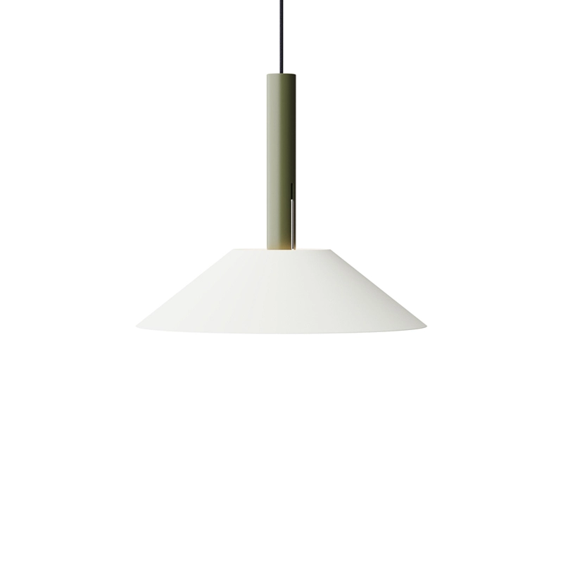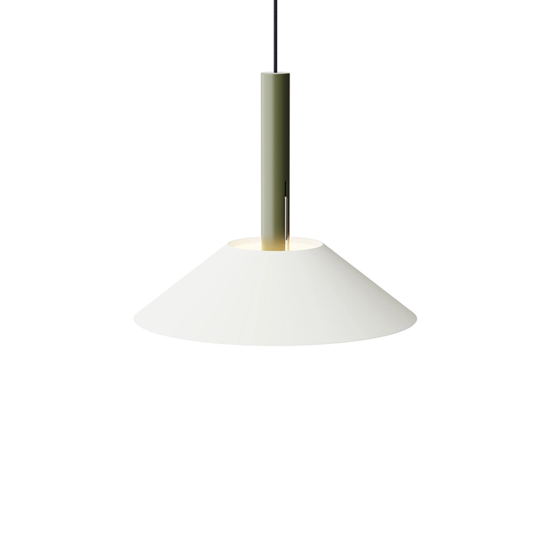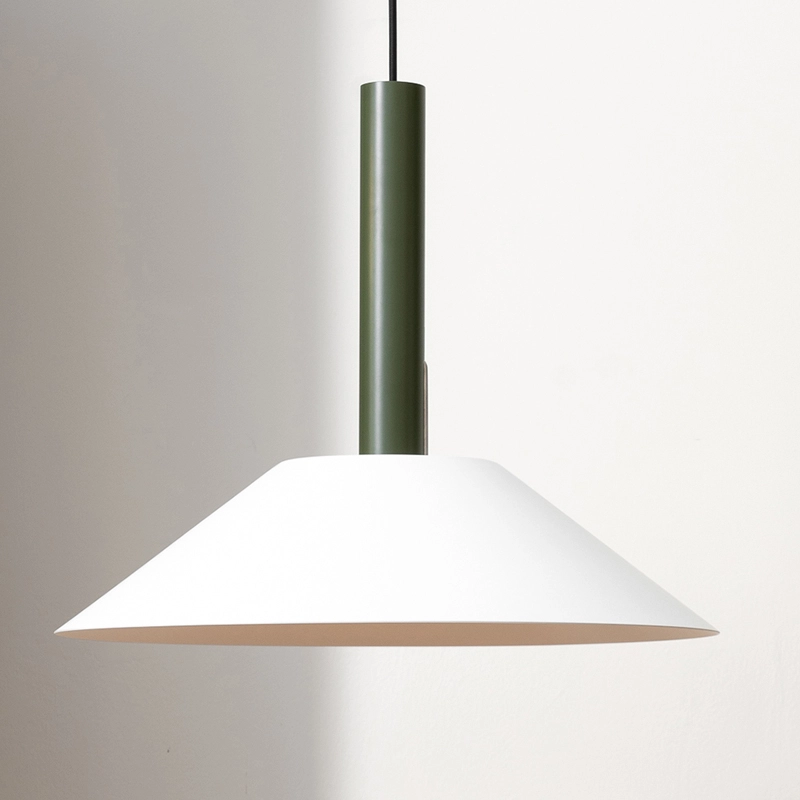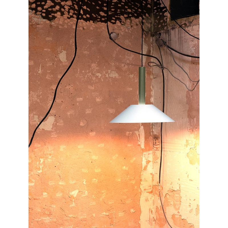 Hook is a collection of pendant lights, based on two simple geometric shapes: a large cone for the lampshade and a cylinder for the luminaire. The shade hangs from a single stainless steel hook, giving it the impression of floating. The Hook suspension is available in two sizes and four colours, each with its own distinctive character. Edited by Nine, Hook is perfect above a dining table or in the centre of a living room.