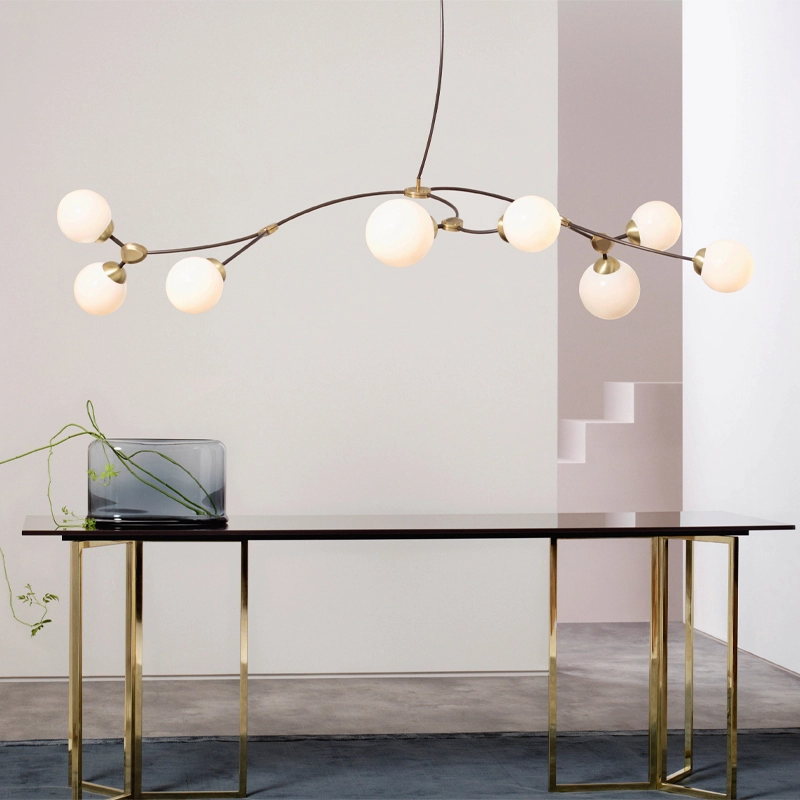 Ivy suspensions are edited by CTO Lighting. Their aesthetic is largely inspired by the London spring and organic growth, which influence the choice of floral structure. The metal frame of the Ivy suspended lights is punctuated by several opal or smoked glass diffusers, giving the illusion of a plant bending as it seeks sunlight, and thus diffusing a large pool of ambient light into the room. Available in different configurations, the Ivy CTO Lighting collection offers options for a variety of uses and spaces.