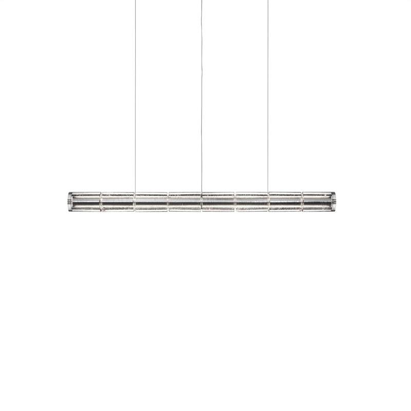 Designed by Ronan and Erwan Bouroullec, the Luce Orizzontale suspension lamp published by Flos features a refined, elegant design. Available in three sizes, it's ideal for illuminating a dining table, kitchen island or meeting table. The suspension Luce Orizzontale has a unique finish thanks to craftsmanship. Edited by Flos, it consists of transparent glass cylinders and a polished extruded aluminium internal structure fitted with linear LED modules for direct and indirect downward lighting. Modules can be easily removed and replaced for maintenance. The Luce Orizzontale suspension luminaire is elegant and sculptural.