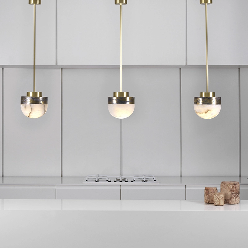 Designed by Michael Verheyden for CTO Lighting, the Lucid collection is inspired by Parisian brasseries and snow domes. Both functional and sculptural, the Lucid lamp showcases premium materials. The suspension Lucid is a refined luminaire composed of a polished alabaster dome and a precision-crafted metal base, available in a range of finishes. The simplicity of this contemporary suspension lends itself perfectly to compositions of several elements, particularly in groups of three above a kitchen island, dining table or bar.