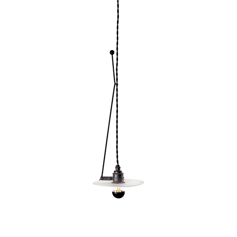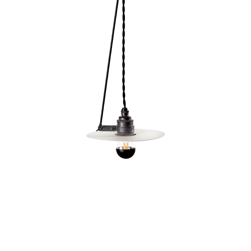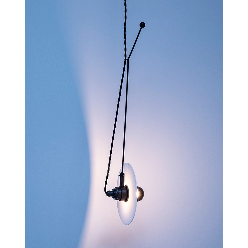 Designed by Ann Demeulemeester for Serax, the Luna collection of suspension lamps comes in two sizes L and S, with three different lengths. Thanks to its ingenious system, the light source of the suspension Luna S1, an E27 bulb with a blackened mirror head, can be directed in any direction, creating enchanting reflections on the porcelain circle. These Luna pendant lights add an elegant, modern touch to any space.