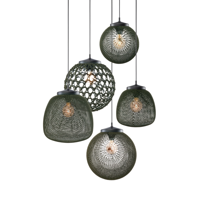Madame Cachet is part of the Monsieur Tricot collection, a range of outdoor lighting edited by Tribu, hand-knitted and crocheted to transform your terrace and garden into a magical place when night falls. The pendant lamps designed by Belgian designer Ilia Eckardt combine traditional techniques, high-performance materials and modern technology. Eckardt has developed its first knitted outdoor lighting collection, designed as a family. Meet the very elegant suspension Madame Cachet, available in three different sizes.