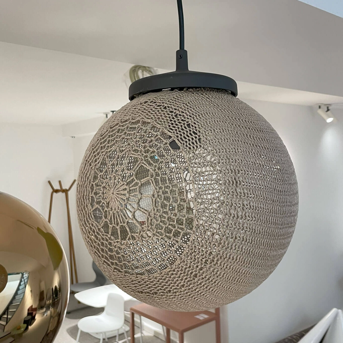 Madame Latoque is part of the Monsieur Tricot collection, a range of outdoor lighting published by Tribu, hand-knitted and crocheted to transform your terrace and garden into a magical place when night falls. The pendant lamps designed by Belgian designer Ilia Eckardt combine traditional techniques, high-performance materials and modern technology. Eckardt has developed its first knitted outdoor lighting collection, designed as a family. Meet the graceful suspension Madame Latoque, available in three different sizes.