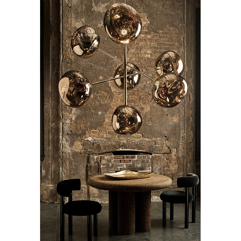 The suspension Melt Chandelier Large is a contemporary light that blends art and design. Designed by Tom Dixon, Melt Chandelier Large is composed of seven lampshades evoking drops of molten liquid frozen in time. When switched on, this suspension emits a soft, warm light, creating a welcoming and captivating atmosphere. The play of light and shadow through the coloured diffusers adds an artistic dimension to the lighting. The Melt Chandelier Large suspension is an example of innovation in lighting design. Melt Large brings a touch of colour and sophistication to any space.