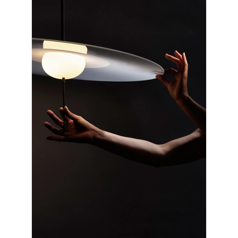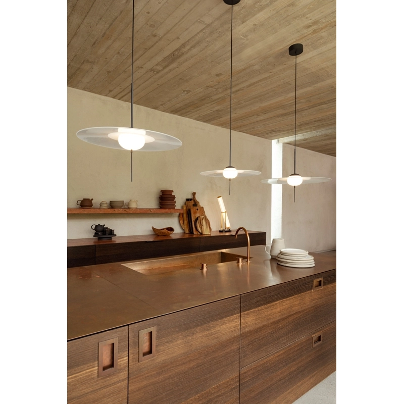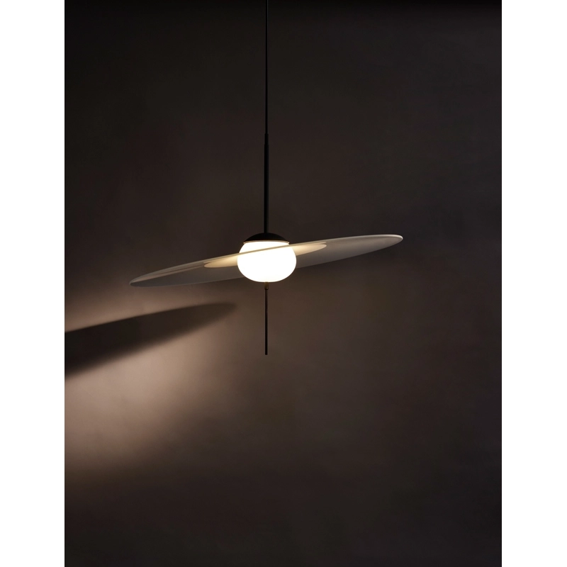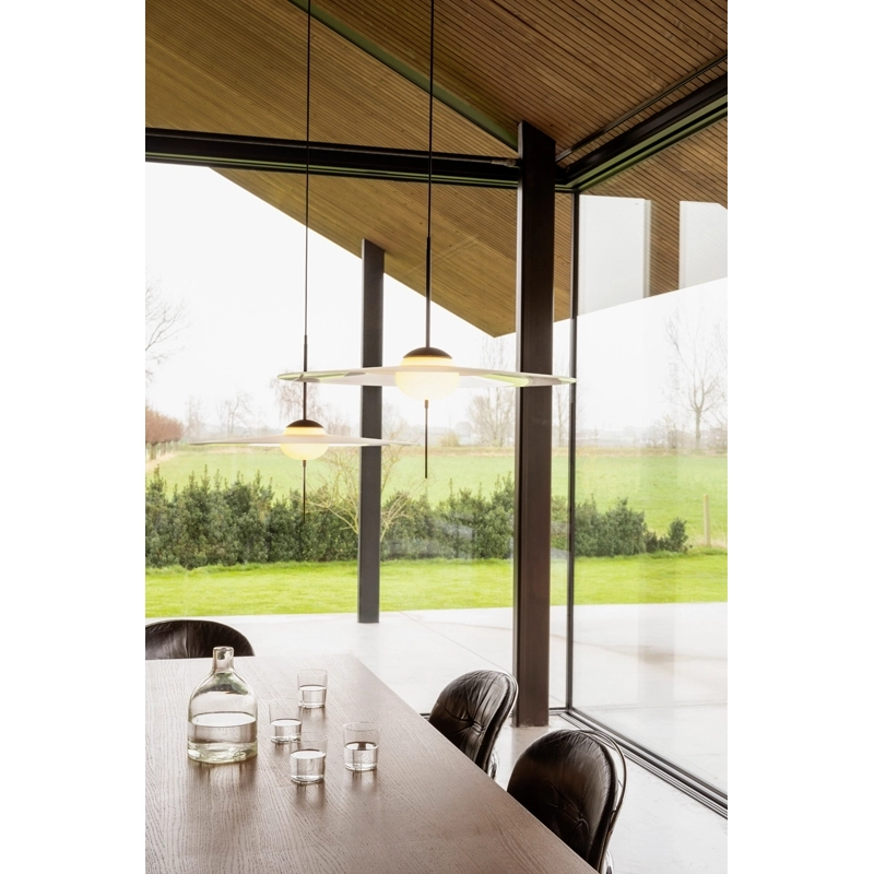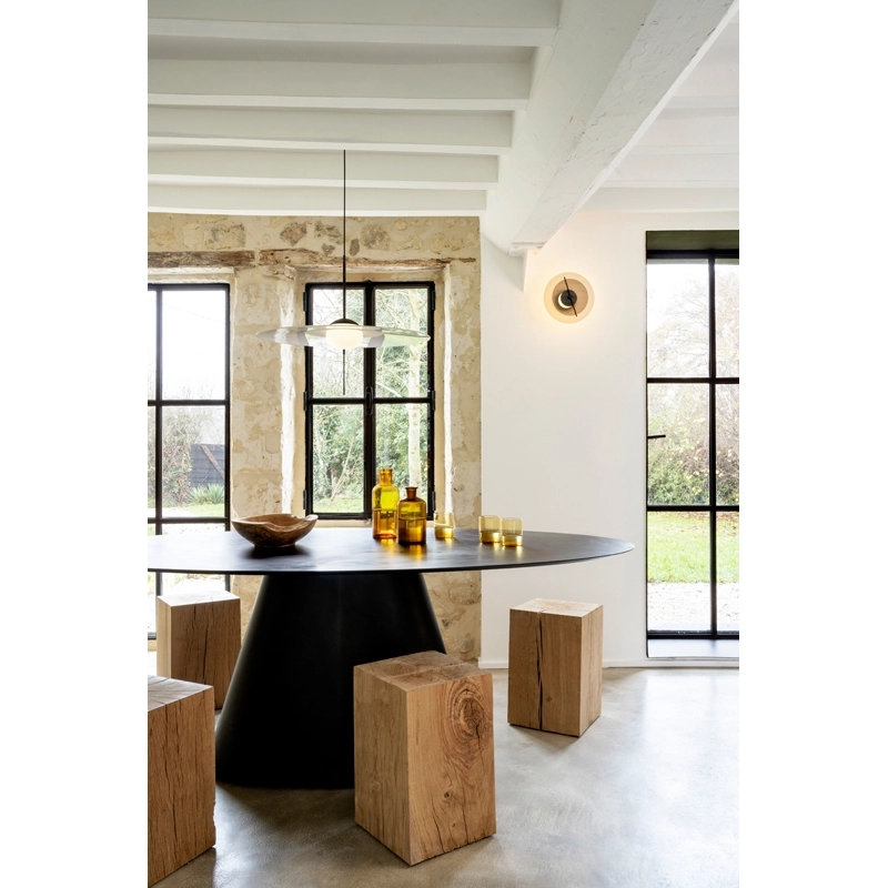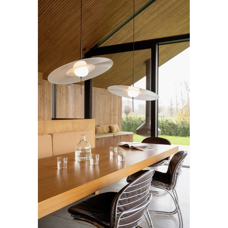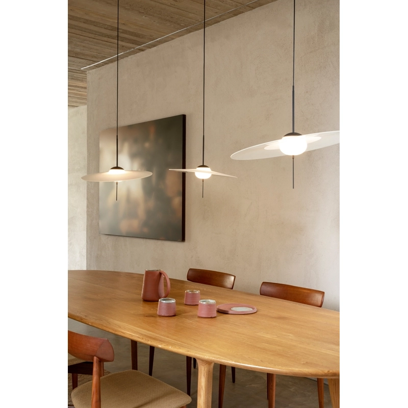 Created by the Vantot studio for the DCW Editions brand, Mono is a series of suspension lamps that are both elegant and playful. Composed of sleek geometric shapes, the Mono suspended lamps stand out for their stem fitted with a tactile switch and dimmer. Another original feature of the lamp is that the disc is separate from the central diffuser, so it can be tilted and adjusted to suit your own tastes. These features complement the timeless and unique aesthetic of the suspension DCW Editions. Available in three sizes, Mono can be installed on its own or as a composition of several elements.
