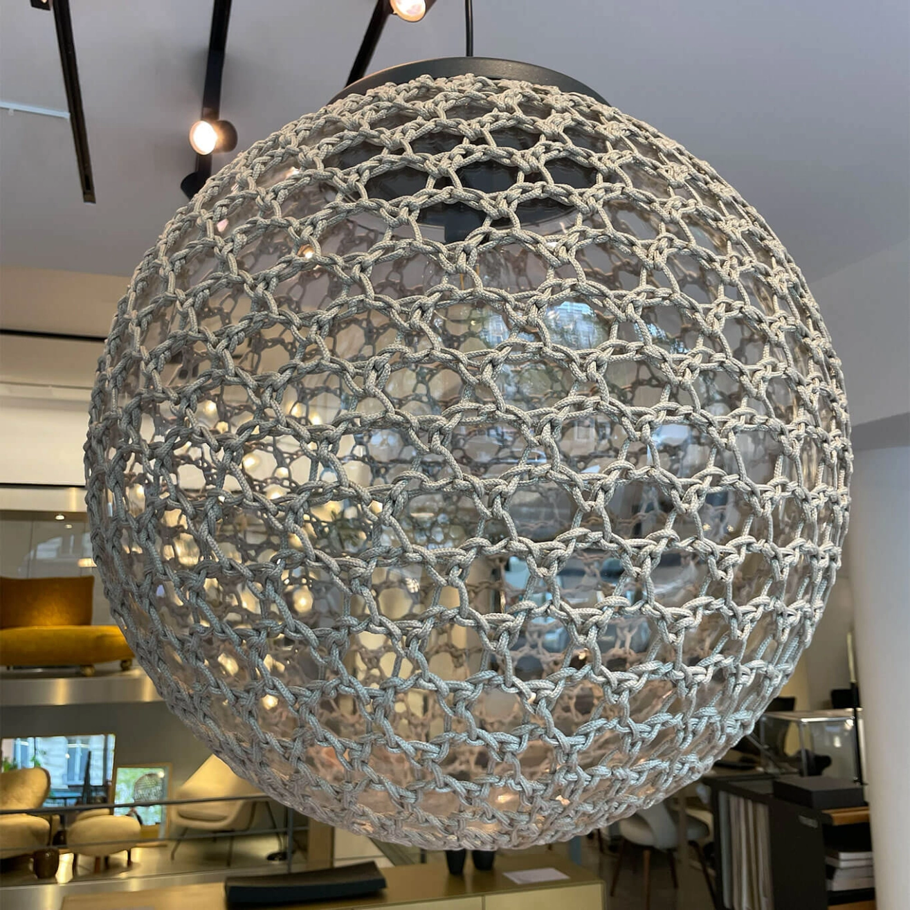 Monsieur Lebonnet is part of the Monsieur Tricot collection, a range of outdoor lighting edited by Tribu, hand-knitted and crocheted to transform your terrace and garden into a magical place when night falls. The pendant lamps designed by Belgian designer Ilia Eckardt combine traditional techniques, high-performance materials and modern technology. Eckardt has developed its first knitted outdoor lighting collection, designed as a family. Meet the seductive second-hand Monsieur Lebonnet suspension, available in three different sizes.