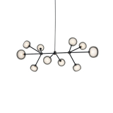 Drawing inspiration from 50s lighting design, the luminaires in the Nabila collection from Tooy embody elegance and sophistication, bringing a touch of refinement to any space. The suspension Nabila 552.10 stands out for its double-walled borosilicate glass light globes, available in a variety of configurations, and its epoxy powder-coated metal structure, embellished with brushed brass or black chrome details. Combining luxury with sobriety, the suspension Nabila 552.10 embodies true elegance in a single element. With Nabila, Tooy offers a wide range of luminaires from sumptuous lusters available in different sizes to smaller versions designed for nightstands, floor lamps and wall sconces.
