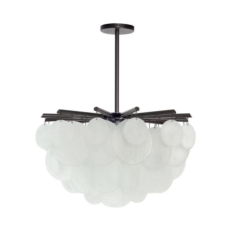 CTO Lighting publishes Nimbus Round Medium, an elegant cloud suspension. Each piece of glass is unique and handcrafted using a process that creates ripples and crystalline textures. Sculptural when switched off, the glass discs gently diffuse light when lit, creating a fascinating effect. The Nimbus Round suspension lamp, a contemporary take on a traditional design, is a striking centrepiece that will grace any interior, standing alone in the centre of a living room or bedroom, or illuminating longer tables and kitchen islands.
