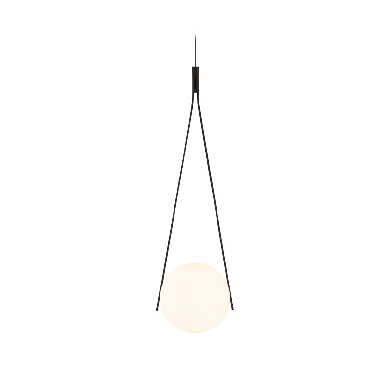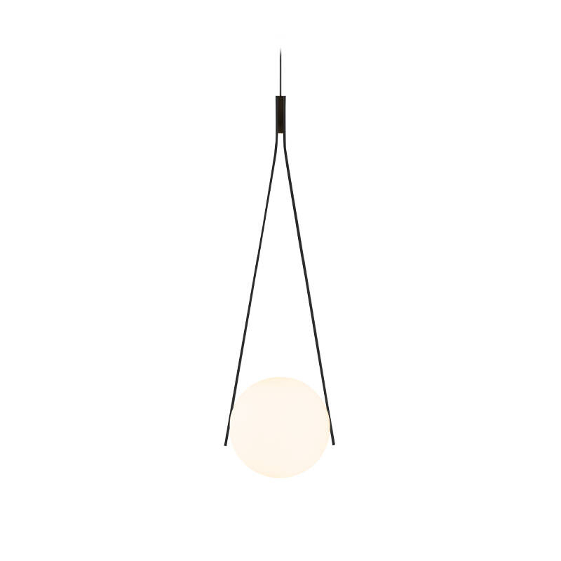 The opaque, spherical diffuser of NameName is held in balance between two thin, almost invisible metal rods, giving the airy sensation that the light source is suspended in a vacuum.