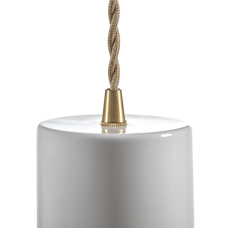 The Olympia 4 suspension lamp, part of the eponymous lighting collection, is designed by designer and ceramist Anita Le Grelle and published by Serax. Made from ultra-fine bone china, the Olympia 4 suspension lamp showcases a timeless cylindrical shade. It adapts easily to any living space, adding volume. With its brass cable clamp and gold cord, it exudes incomparable refinement. The hand-finished Olympia 4 suspension lamp reflects Anita Le Grelle's meticulous aesthetic as well as her entire lighting collection for Serax.