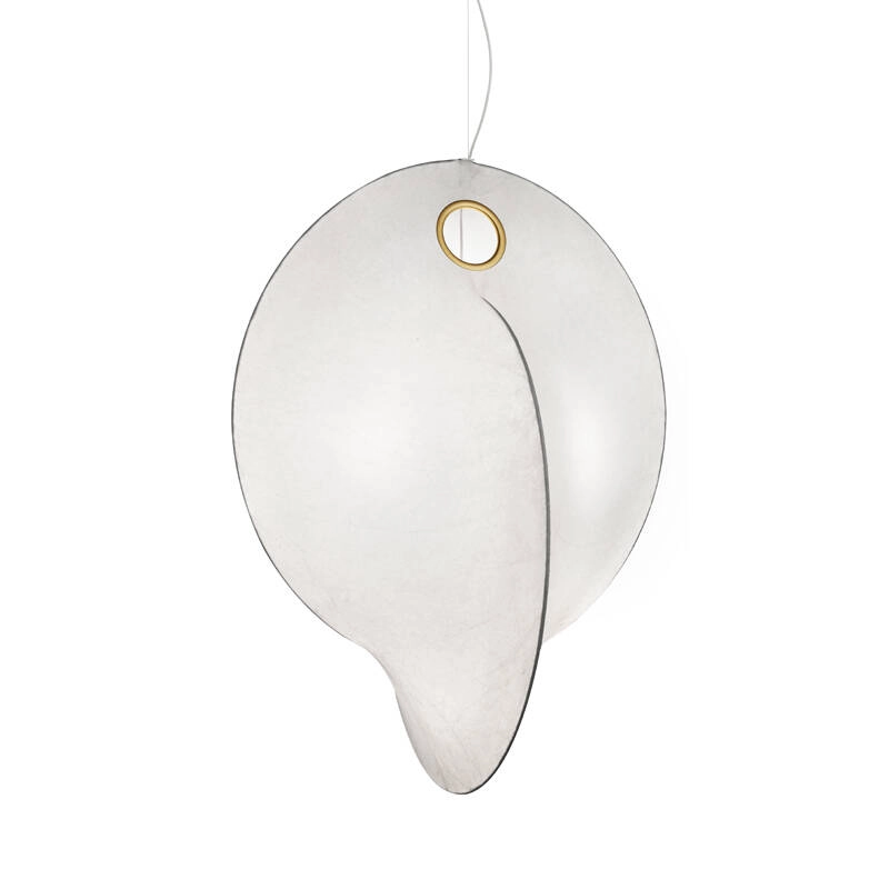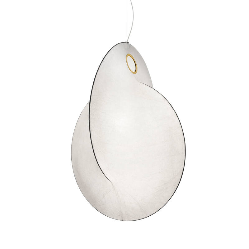 The Overlap S2 suspension designed by Michael Anastassiades for the Flos brand, is composed of a white powder-coated steel internal structure and a Cocoon resin diffuser sprayed onto the structure with transparent protection. The gold eyelet at the top of the structure provides easy access for changing the bulb. The Overlap suspension offers a special effect to the eye, the two rings seem to merge into each other which gives the lamp a very original and sculptural effect. The diffused light is even and spreads out in all directions, the Overlap S2 suspension will make a modern decoration for your interiors.