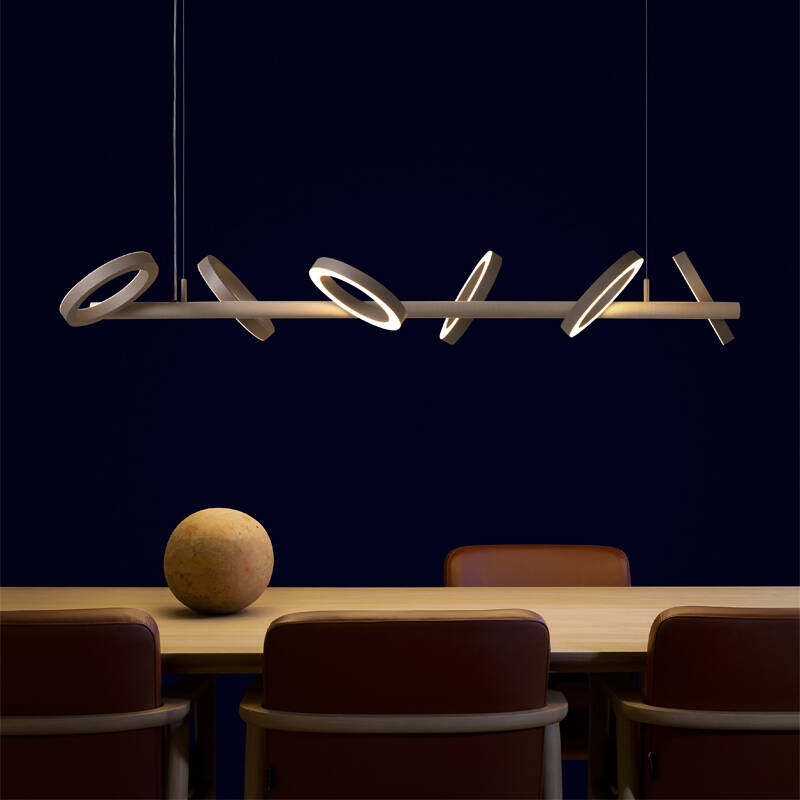 Pallana is the result of combining a playful name with the best possible functionality. The Pallana luminaire consists of a tubular body that connects several inclined diffusers, for diffused light emission.