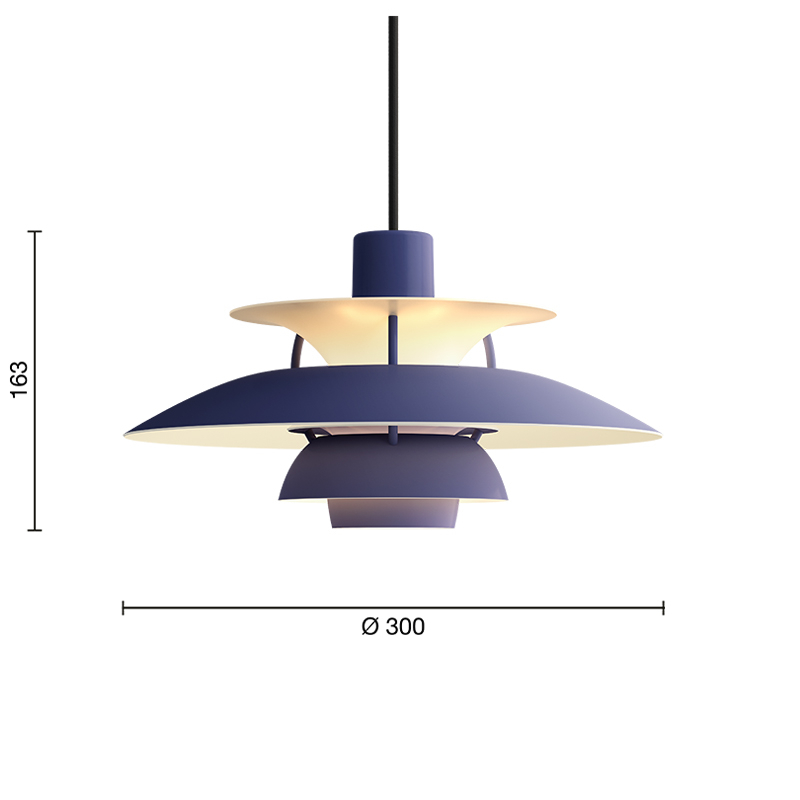 PH 5 suspension takes its name from the 50cm diameter of the luminaire's main shade. At the time of its creation, no one suspected that PH 5 would come to embody Poul Henningsen's characteristic lighting style. The suspension lamp is characterised by its 100% glare-free illumination, regardless of the light source used or how the lamp is installed. The suspension emits light downwards and sideways, so it lights itself up. Timeless,