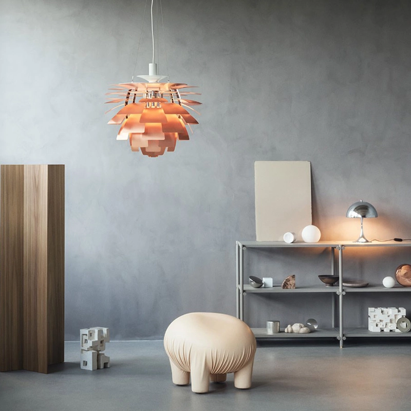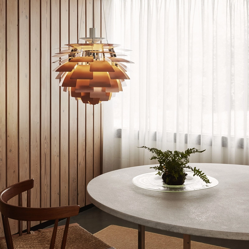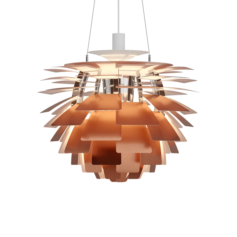 When Poul Henningsen designed the iconic PH Artichoke for Copenhagen's Langelinie Pavillonen restaurant in 1958, he opted for copper slats with a pink finish on the inside. With this combination, the PH Artichoke is exceptionally warm and reflects the light from its masked light source superbly. The PH Artichoke produces soft, glare-free lighting. Its complex design and structure ensure that the light is evenly distributed throughout the room. Edited by Louis Poulsen, the PH Artichoke suspension is now considered a design classic.