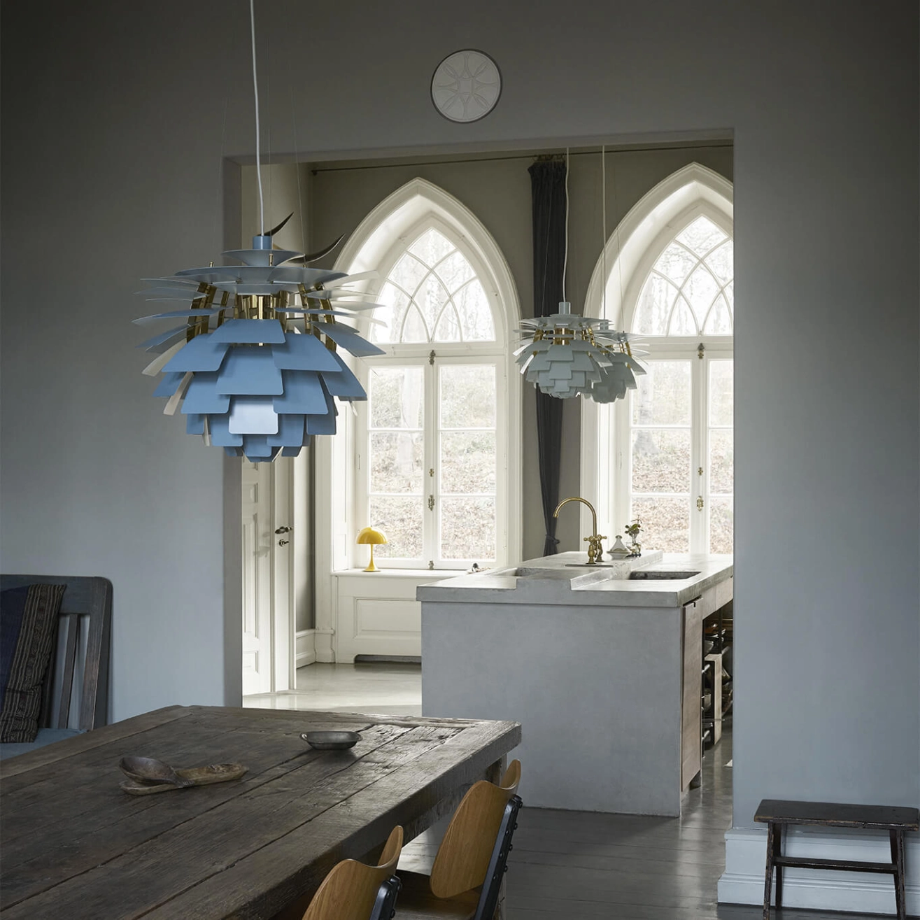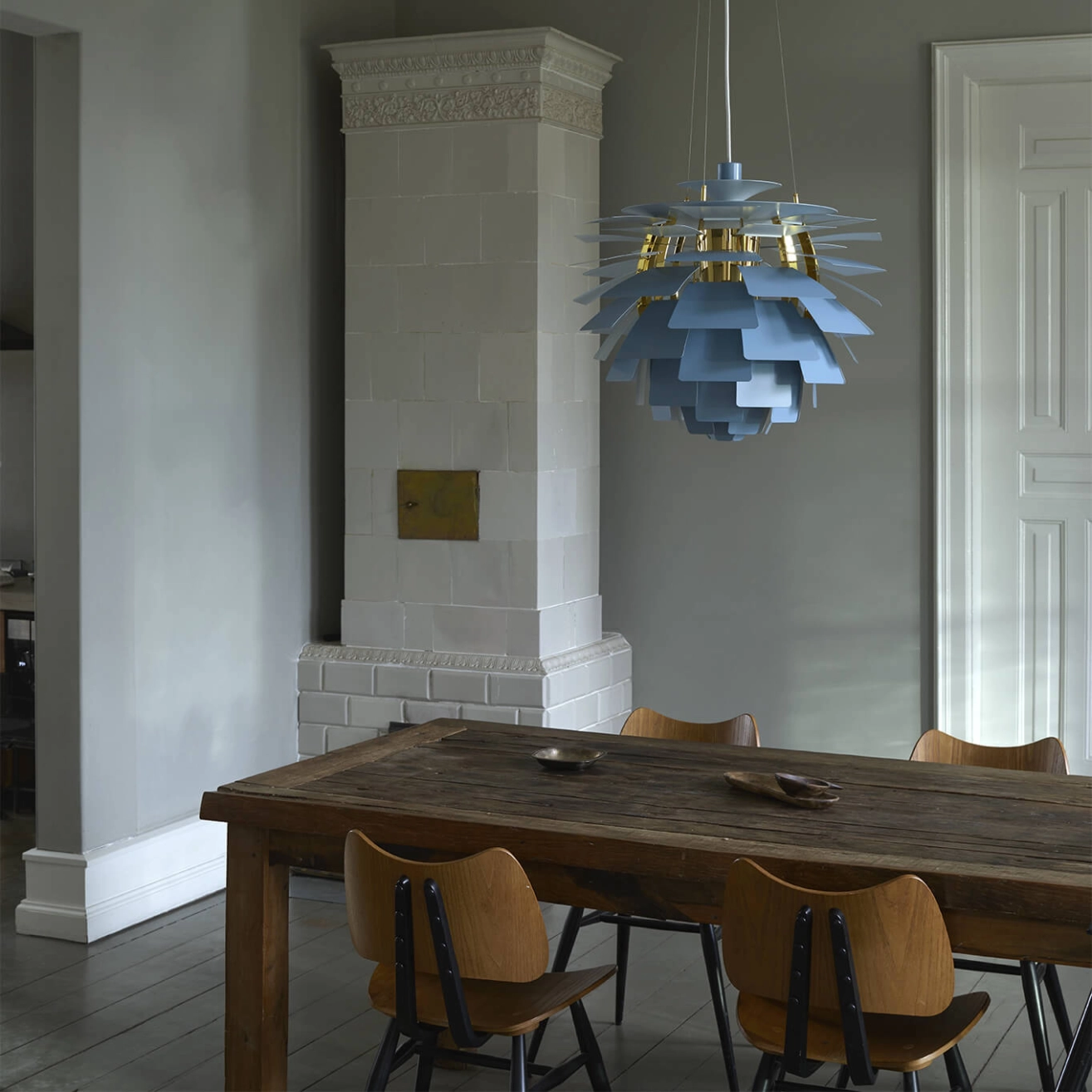 When Poul Henningsen designed the iconic PH Artichoke for Copenhagen's Langelinie Pavillonen restaurant in 1958, he opted for copper slats with a pink finish on the inside. With this combination, the PH Artichoke is exceptionally warm and reflects the light from its masked light source superbly. The PH Artichoke produces soft, glare-free lighting. Its complex design and structure ensure that the light is evenly distributed throughout the room. Edited by Louis Poulsen, the PH Artichoke suspension is now considered a design classic.