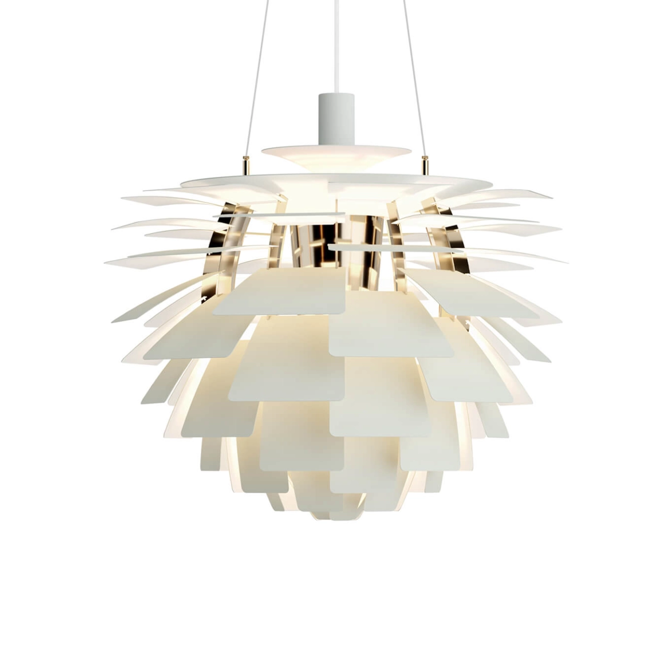 When Poul Henningsen designed the iconic PH Artichoke for Copenhagen's Langelinie Pavillonen restaurant in 1958, he opted for copper slats with a pink finish on the inside. With this combination, the PH Artichoke is exceptionally warm and reflects the light from its masked light source superbly. The PH Artichoke produces soft, glare-free lighting. Its complex design and structure ensure that the light is evenly distributed throughout the room. Edited by Louis Poulsen, the PH Artichoke suspension is now considered a design classic.
