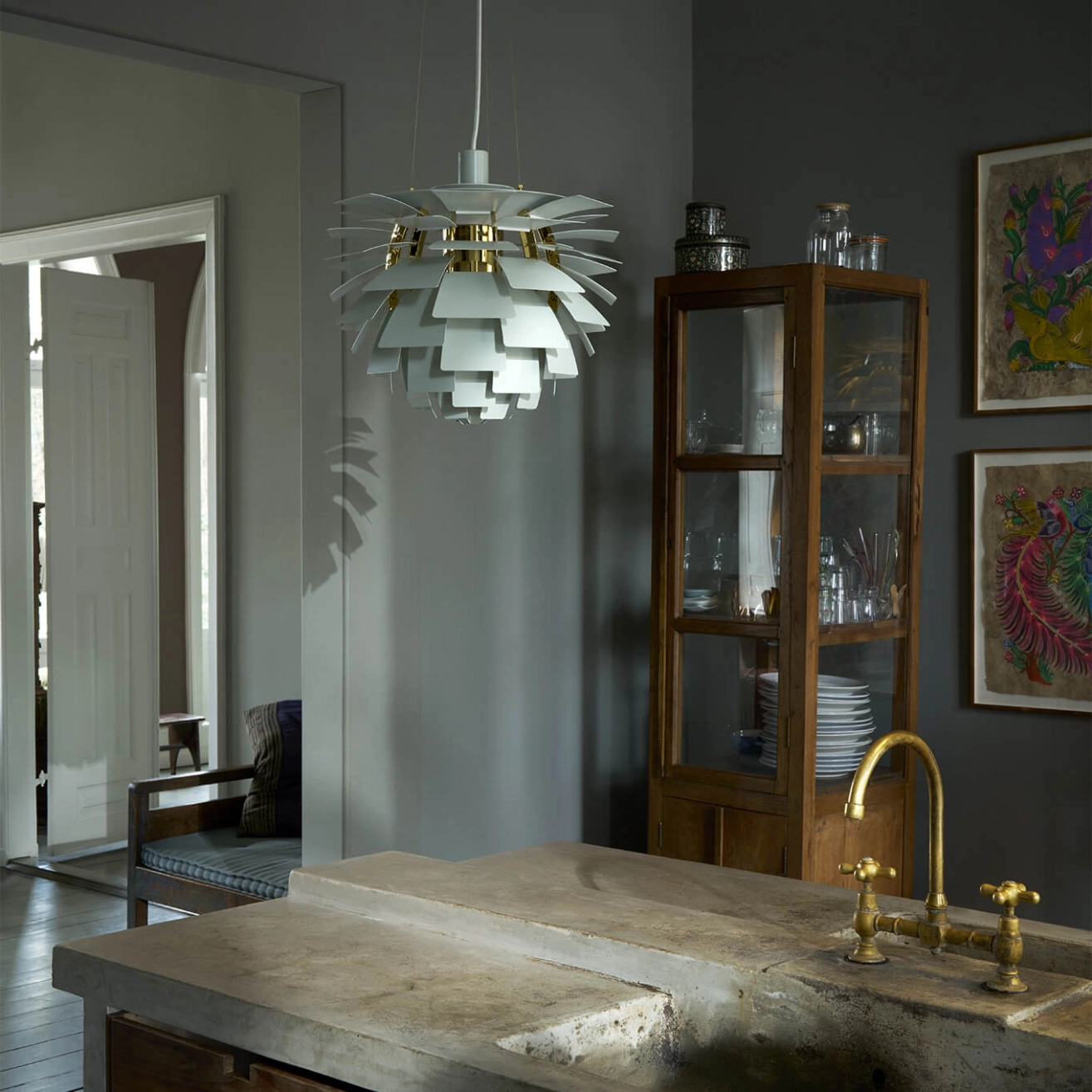 When Poul Henningsen designed the iconic PH Artichoke for Copenhagen's Langelinie Pavillonen restaurant in 1958, he opted for copper slats with a pink finish on the inside. With this combination, the PH Artichoke is exceptionally warm and reflects the light from its masked light source superbly. The PH Artichoke produces soft, glare-free lighting. Its complex design and structure ensure that the light is evenly distributed throughout the room. Edited by Louis Poulsen, the PH Artichoke suspension is now considered a design classic.