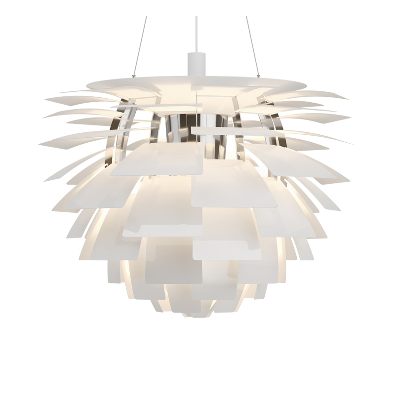 When Poul Henningsen designed the iconic PH Artichoke for Copenhagen's Langelinie Pavillonen restaurant in 1958, he opted for copper slats with a pink finish on the inside. With this combination, the PH Artichoke is exceptionally warm and reflects the light from its masked light source superbly. The PH Artichoke produces soft, glare-free lighting. Its complex design and structure ensure that the light is evenly distributed throughout the room. Edited by Louis Poulsen, the PH Artichoke suspension is now considered a design classic.