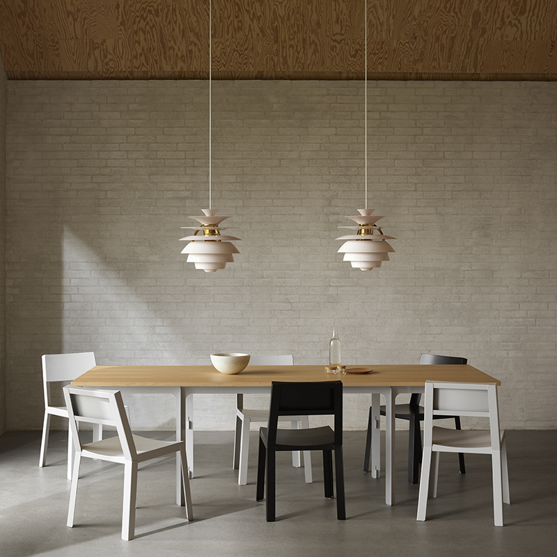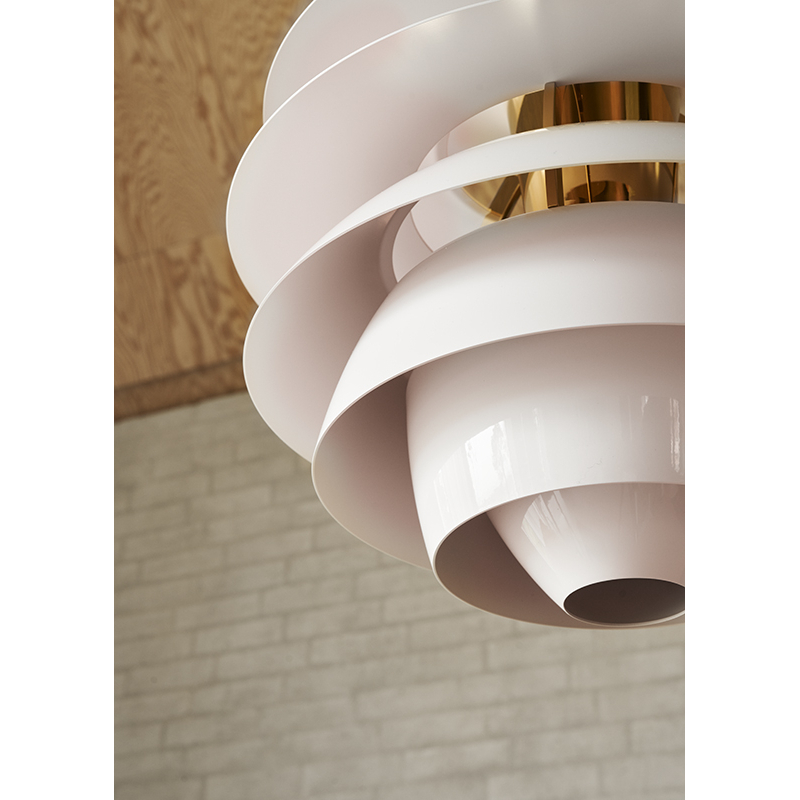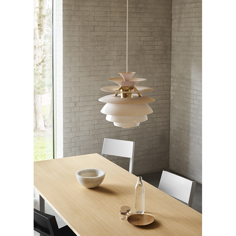 To celebrate its 150th anniversary, Louis Poulsen is offering a special collection, featuring iconic designs. For the occasion, these design classics are transformed into collector's items, with a pale pink finish and brass details.