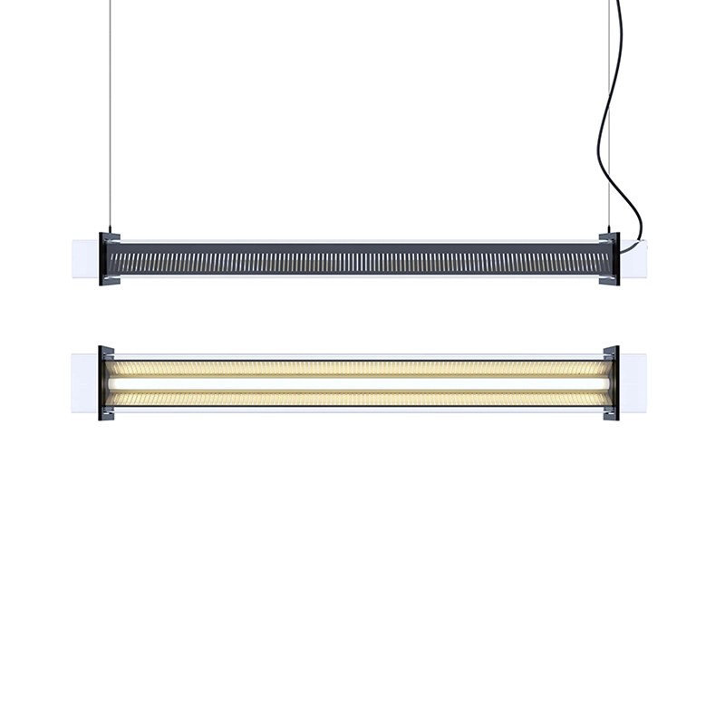 Designed by Jean-Michel Wilmotte for the Sammode brand, Quadratube P1 is a suspension lamp with an elegant silhouette that comes in two lengths (130 cm or 160 cm). As well as providing direct lighting, its rectangular louver-like perforations subtly diffuse light to the sides, creating a soft, pleasant ambience. More than just a luminous object, the Quadratube suspension luminaire incorporates an LED module and a reflector for remarkable lighting quality and visual comfort. The integration of the power supply cable in a notch at the top bears witness to the particular attention paid to detail. The Quadratube Sammode collection includes different models of wall and ceiling lights to suit any space.