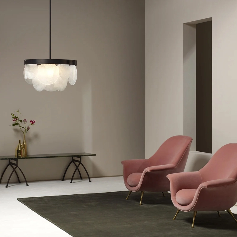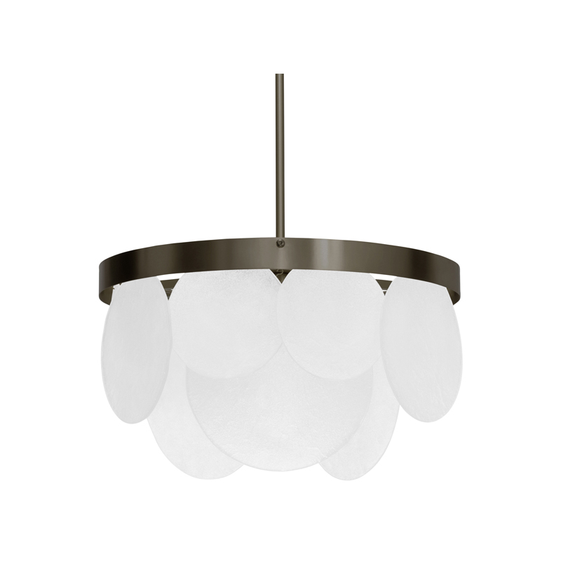 CTO Lighting publishes Sasha, a suspension in which each piece of glass is unique. A luminaire with a contemporary, elegant design, Sasha fascinates with the surprising sensation of lightness it provides. The structure of Sasha consists of a luxurious ring of satin-finish brass or bronze that holds several glass diffusers. The droplets on each disc are shaped by hand using traditional craftsmanship. Emitting a lovely warm, soft glow, the Sasha CTO Lighting suspension enhances the character of any room. This versatile chandelier is perfect for any space.