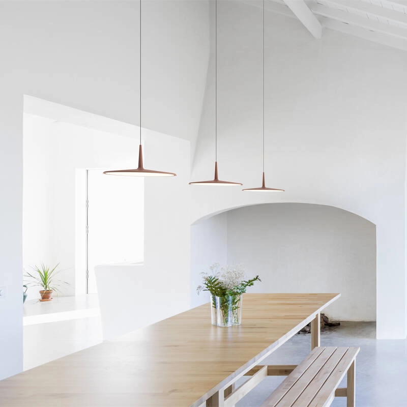 The simplicity and purity of form of Skan luminaires lend themselves to a wide range of decors, from the most classic to the most contemporary. The Skan pendant lights project a wide, bright downlight that defines living areas such as dining rooms, living rooms or open kitchens, while adding a touch of design. The Skan floor lamps, meanwhile, add more character and modernity to living rooms and reading areas, as well as offices and reception rooms.
