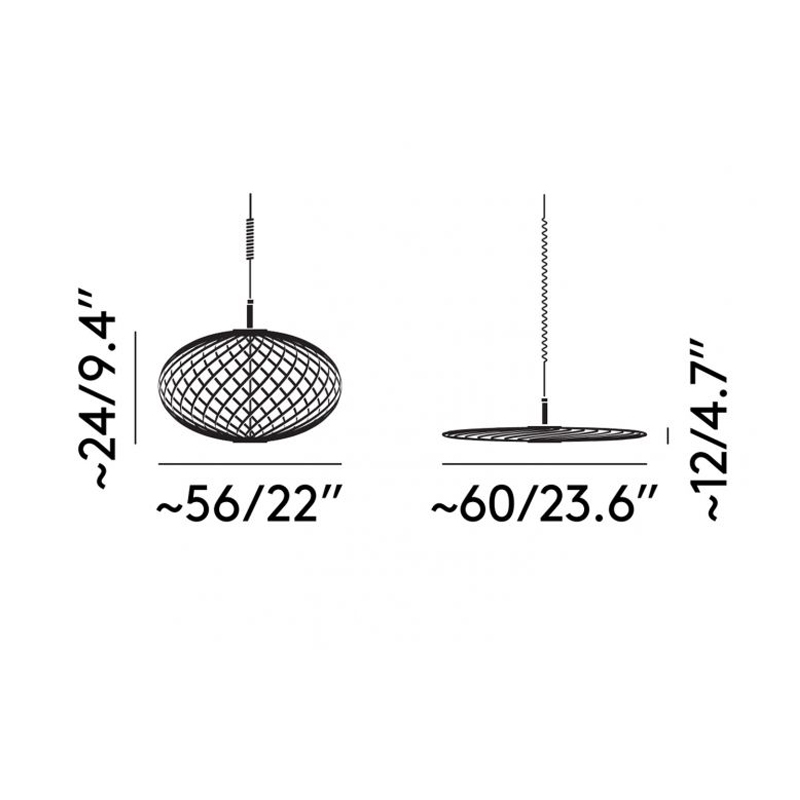 Designed by Tom Dixon, Spring is a series of three suspensions made from high-performance stainless steel blades. Each flexible stainless steel ribbon is arranged like a whip around the dimmable, bespoke Tom Dixon LED disc. The semi-transparent shape thus created can be adjusted into different silhouettes: in its flat form, Spring is reminiscent of a spirograph drawing, another configuration gives it the air of a flying saucer and its most voluminous form is similar to a pumpkin.