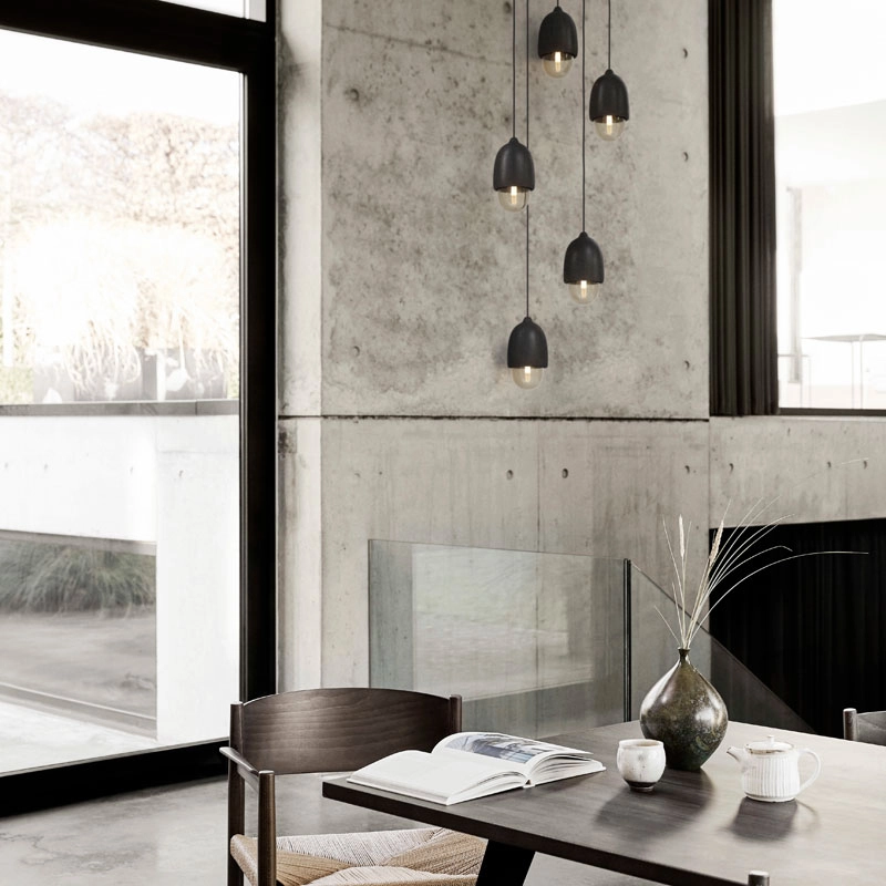 The Terho lighting collection was designed by designer Maija Puoskari for the Mater brand. Inspired by nature, Terho means 'acorn' in Finnish and refers to the organic form found in nature. The softness and beauty of the shape combined with the glass make it both contemporary and timeless. The Terho collection consists of three sizes of pendant lamps that come in two finishes: black with a smoked diffuser or natural with opaline white glass. The wood used is FSC-certified, sourced from responsible European forests, while the glass is mouth-blown in Poland. Terho is a durable luminaire for both private and public use.