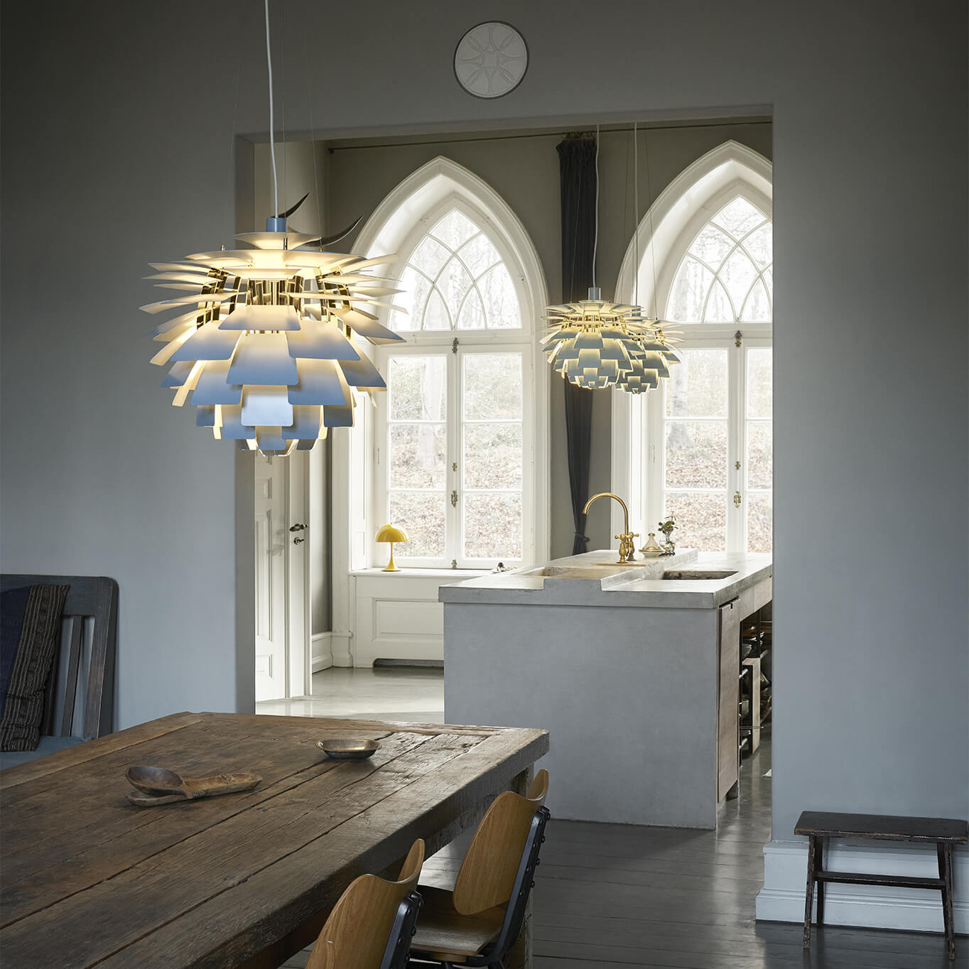 When Poul Henningsen designed the iconic PH Artichoke for Copenhagen's Langelinie Pavillonen restaurant in 1958, he opted for copper slats with a pink finish on the inside. With this combination, the PH Artichoke is exceptionally warm and reflects the light from its masked light source superbly. The PH Artichoke produces soft, glare-free lighting. Its complex design and structure ensure that the light is evenly distributed throughout the room. Edited by Louis Poulsen, the PH Artichoke suspension is now considered a design classic.