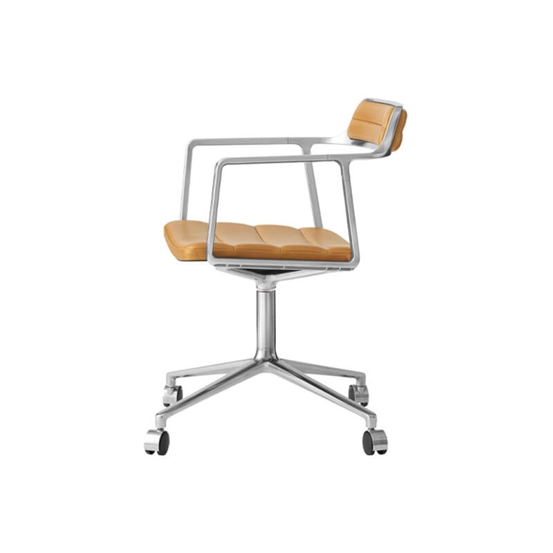 SWIVEL CHAIR 452 on castors Camel leather / Polished aluminium