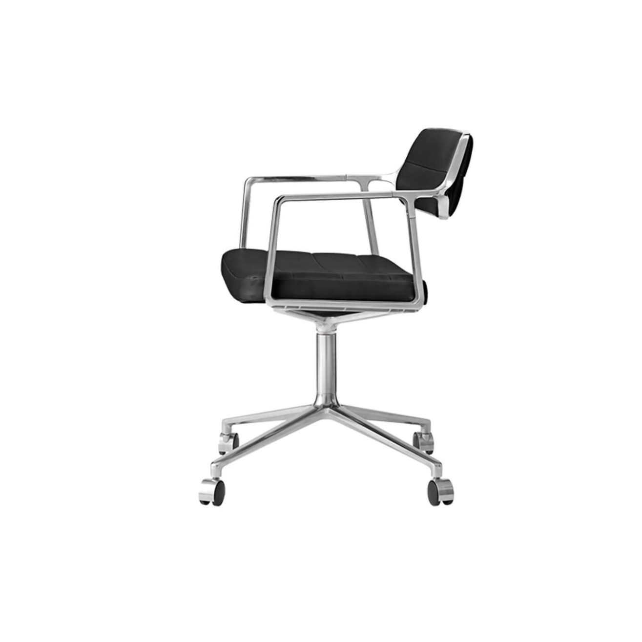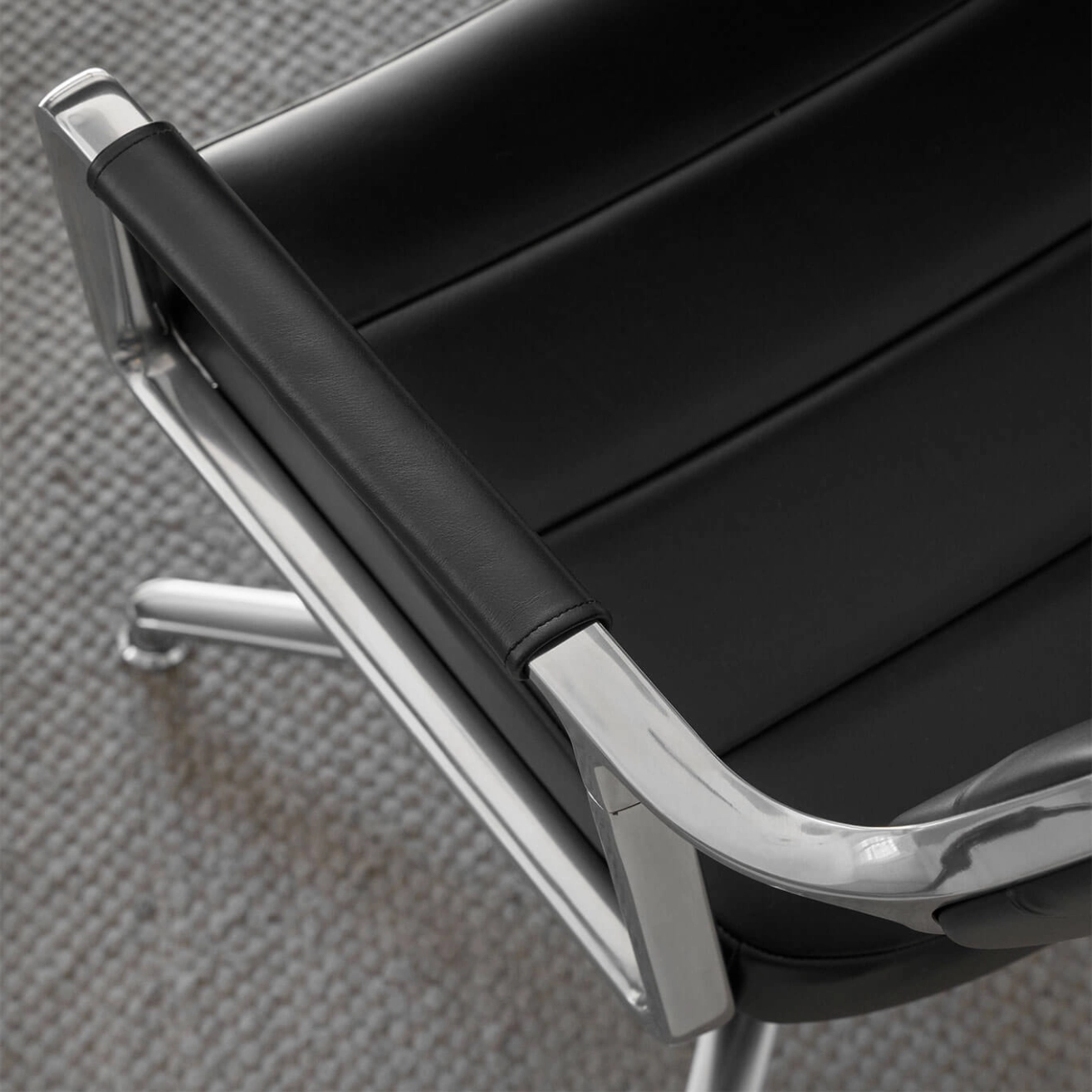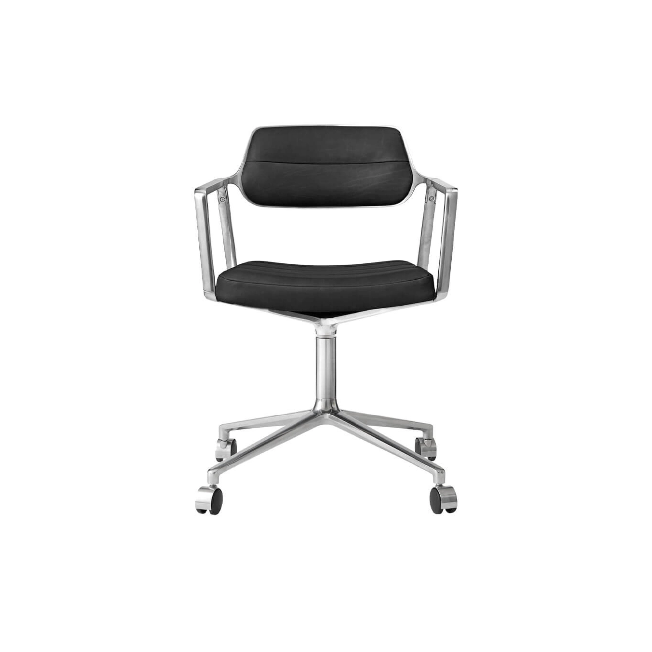 SWIVEL CHAIR 453 on castors Black leather / Polished aluminium