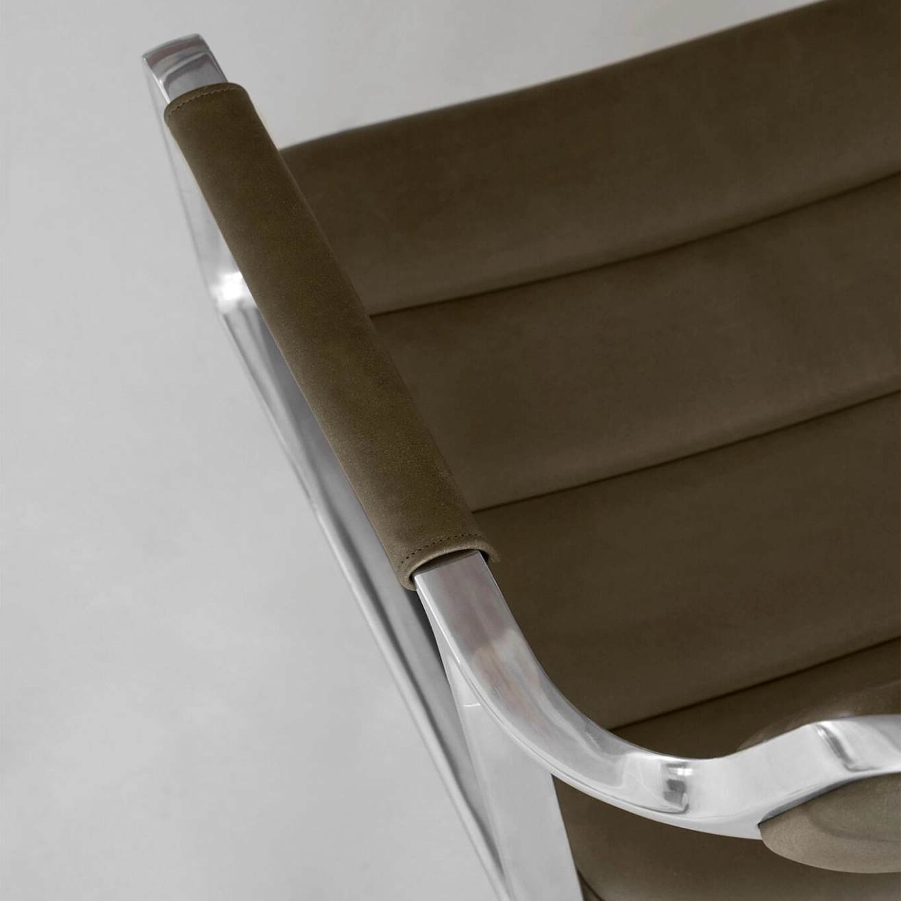 Polished aluminum frame with powder coating, seat available in textile or aniline leather upholstery