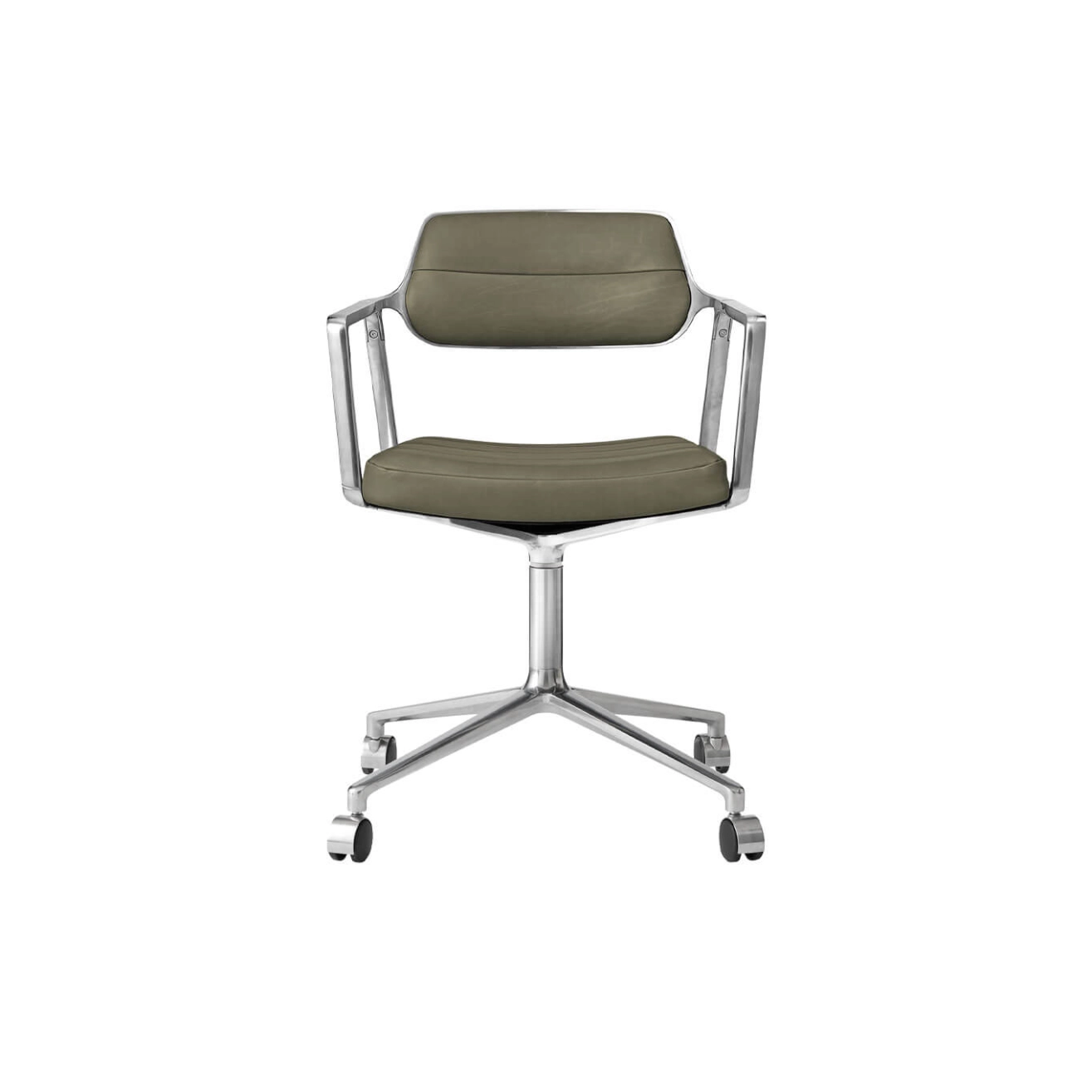 SWIVEL CHAIR 453 with castors Bosco Green leather / Polished aluminium