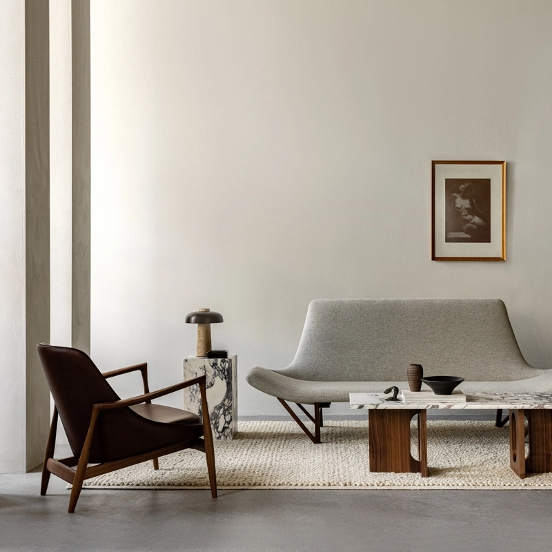 Androgyne was initially designed by Danielle Siggerud for the Menu Space café, but it soon stood out for its playful, elegant silhouette. Celebrating craftsmanship, the Androgyne coffee table is available in natural or dark oak, walnut, Calacatta Viola marble or Kunis Breccia stone, but also with a wood base, combined with a stone top. With its generous proportions, simple shapes and different finishes, the Androgyne Menu coffee table fits easily into any living room, adding a touch of elegance. It can also be used as a small bench to display books or small objects.