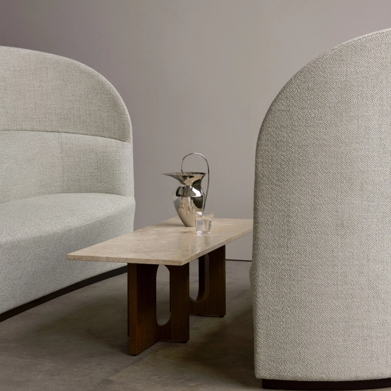 Androgyne was initially designed by Danielle Siggerud for the Menu Space café, but it soon stood out for its playful, elegant silhouette. Celebrating craftsmanship, the Androgyne coffee table is available in natural or dark oak, walnut, Calacatta Viola marble or Kunis Breccia stone, but also with a wood base, combined with a stone top. With its generous proportions, simple shapes and different finishes, the Androgyne Menu coffee table fits easily into any living room, adding a touch of elegance. It can also be used as a small bench to display books or small objects.